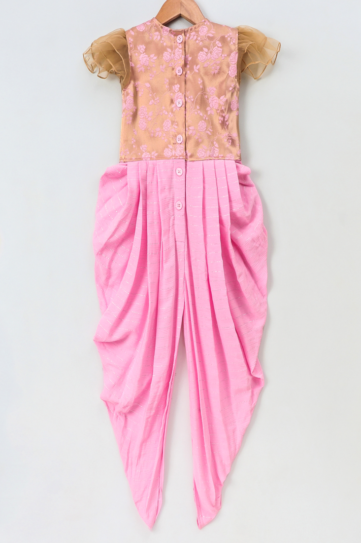 | Product Name | Woven Half Sleeves Embellished Jumpsuit Golden & Babypink | |