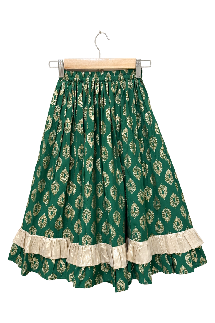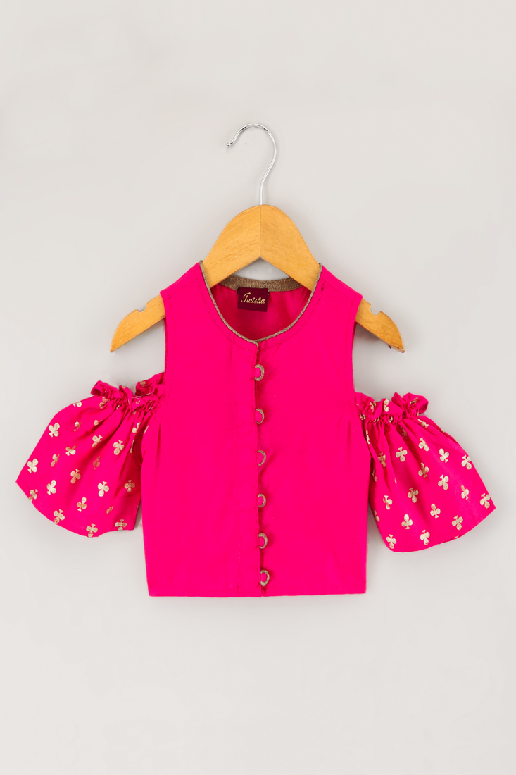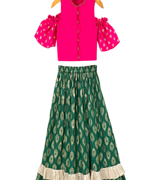 Woven half sleeves printed top with printed lehenga-pink & green