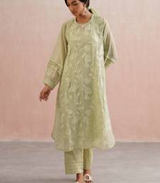| Product Description | Soft, Graceful, And Timeless The Willow Set Is Crafted In A Serene Sage Green Mul Chanderi, Designed For Effortless Elegance. The Kurta Features Full Sleeves With Pleated Detailing And Pearl Embellishments, Adding A Delicate Touch To Its Structured Silhouette. It’s Adorned With Handcrafted Appliqué Embroidery And Scattered Pearls, Creating An Ethereal, Textural Charm. It Has A Straight Fit With Slits.
