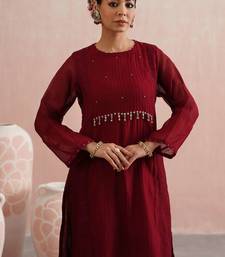 | Product Description | The Zeenat Set Is Crafted In A Rich Maroon Mul Chanderi With Soft Pure Mul Cotton Lining, Blending Traditional Detailing With Festive Finesse.The Straight Fit Kurta Features Intricate Pintuck Detailing On The Front, Embellished With Pearls And Polki Jewel Hangings. The Side Panels And Full Length Sleeves Are Tailored In Striped Chanderi, Enhanced With Lace Inserts And Beautifully Embroidered Pearls Across All The Hemlines.