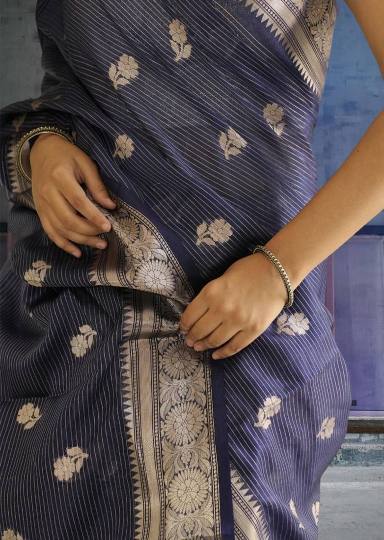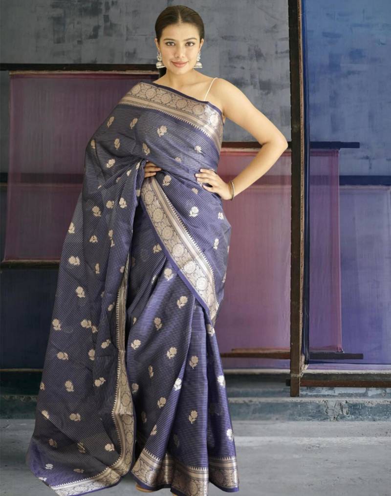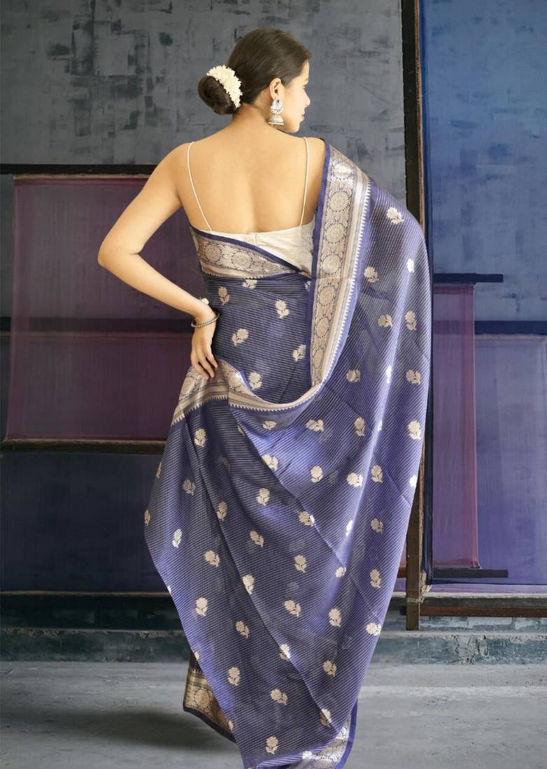 Blue banarasi silk blend saree