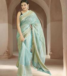 Blue tissue linen saree with zari border