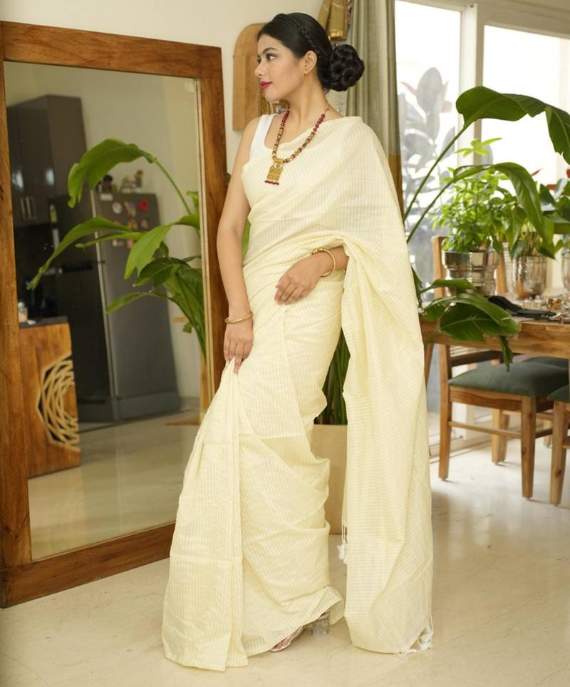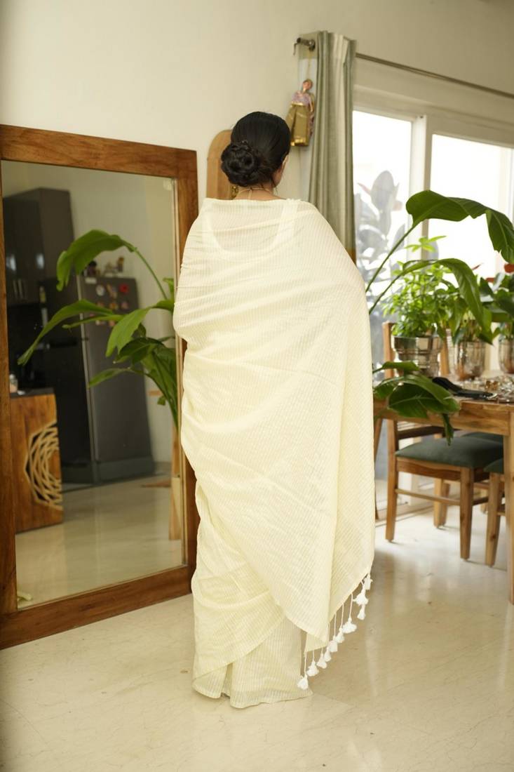 Ethereal elegance ivory handwoven saree with subtle stripes