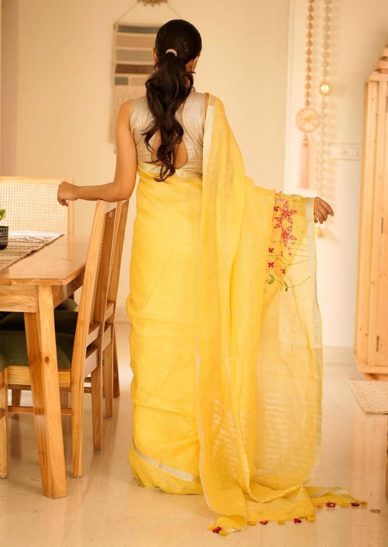 | • | Saree | : | Color- Yellow / Fabric- Linen |
