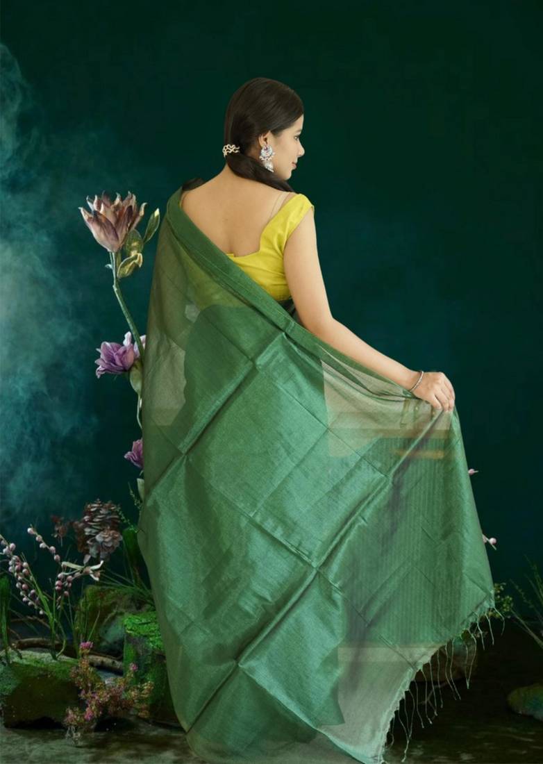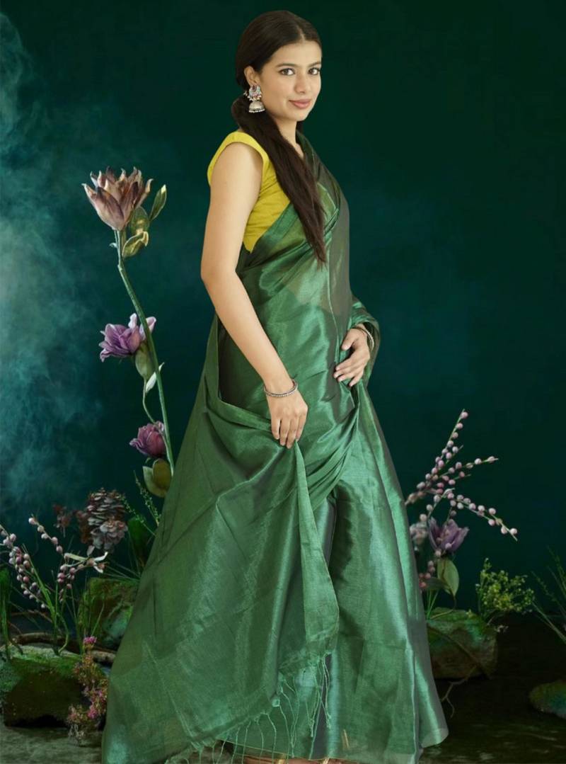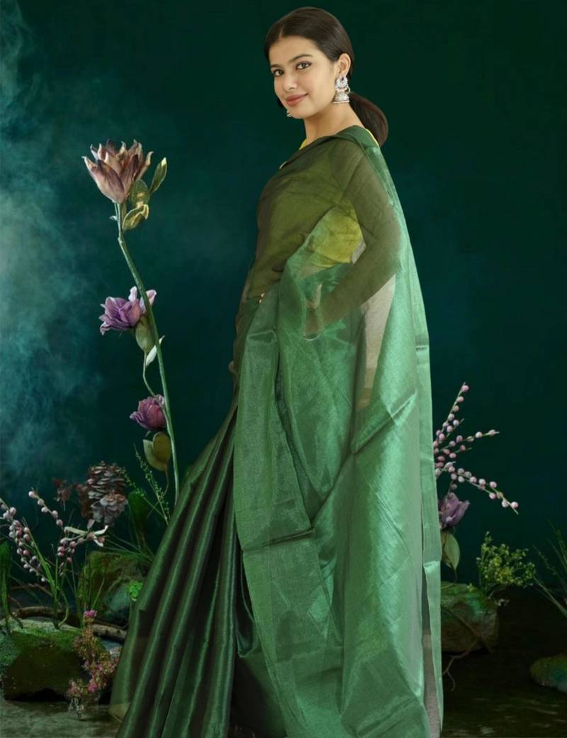 | Product Name | Green Glass Tissue Silk Blend Saree | |
