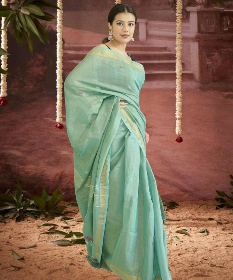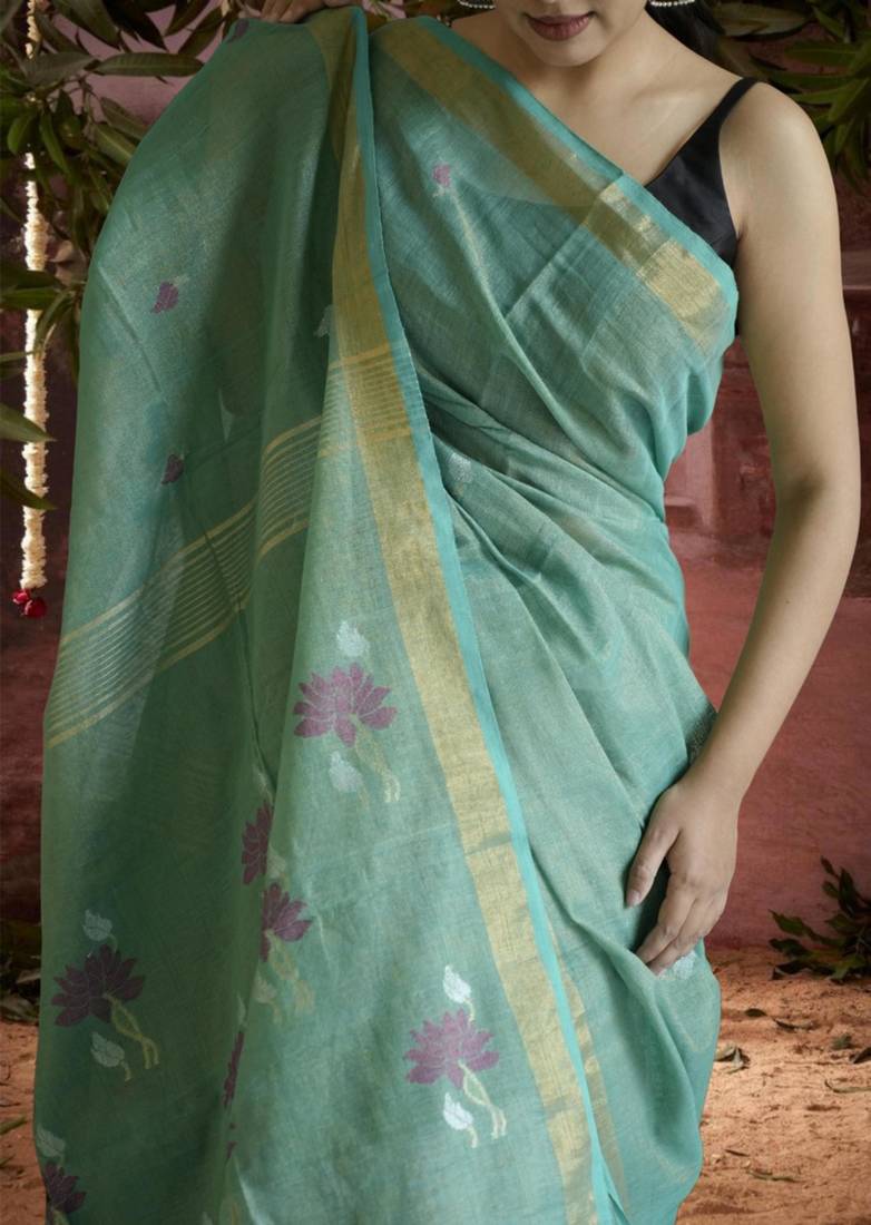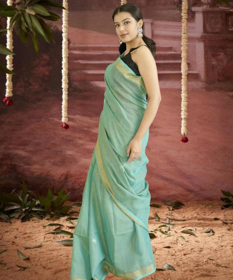 | Product Name | Green Linen Silk Blend Saree With Zari Border | |