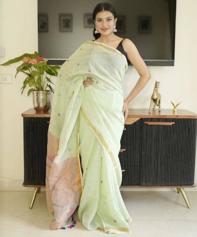 | • | Saree | : | Color- Green / Fabric- Linen |
