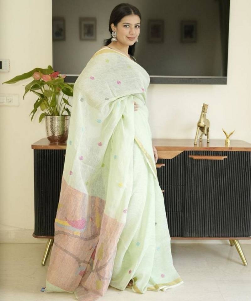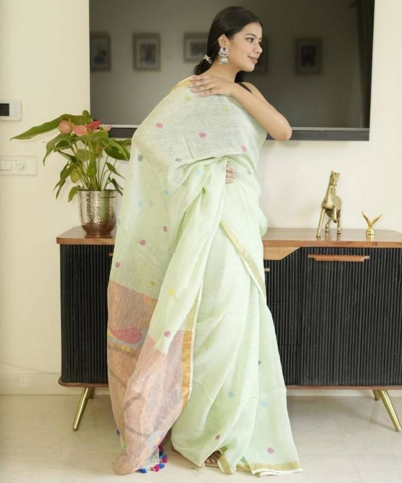 | Product Name | Green Paithani Linen Saree With Hand Embroidery | |