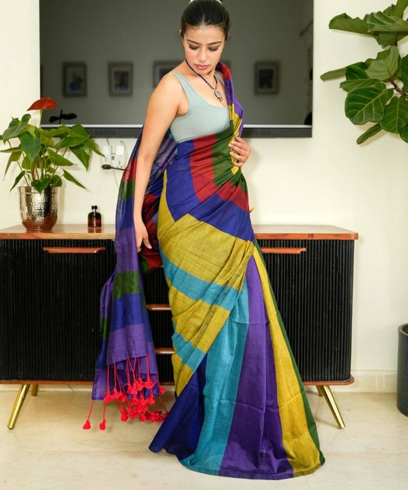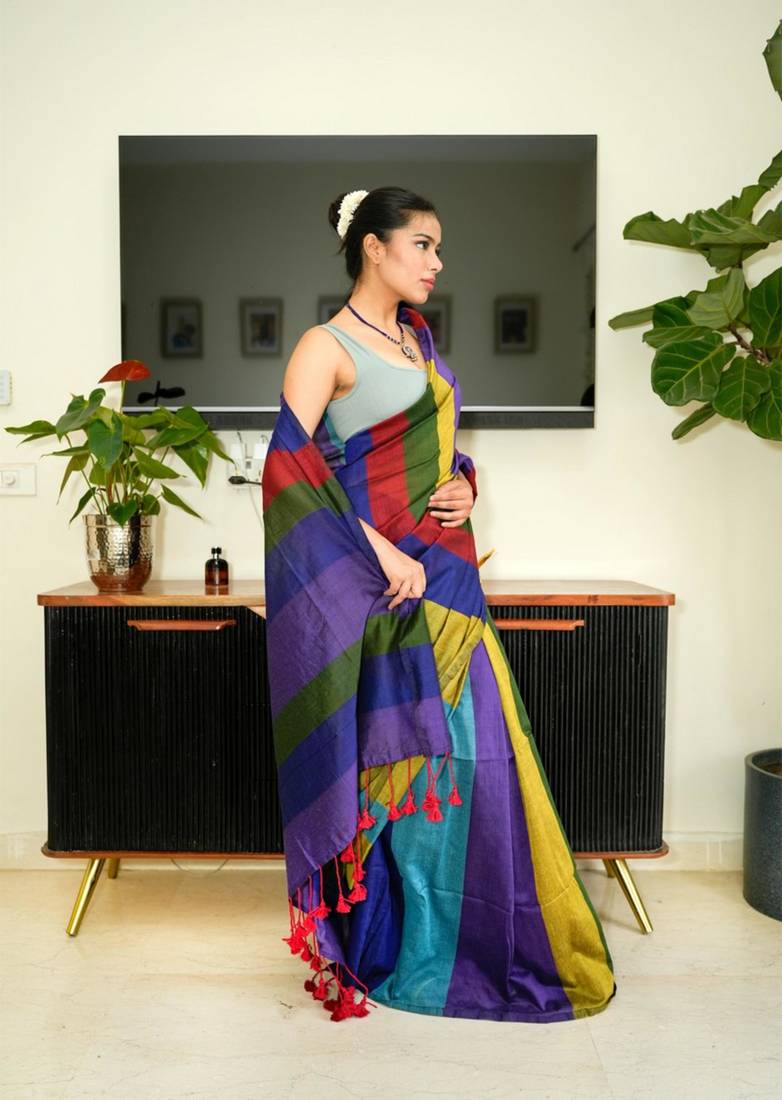 | Product Name | Multi Color Spectrum Stripes Handwoven Cotton Saree | |