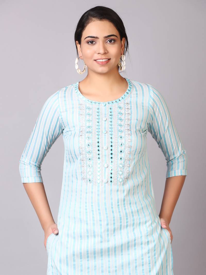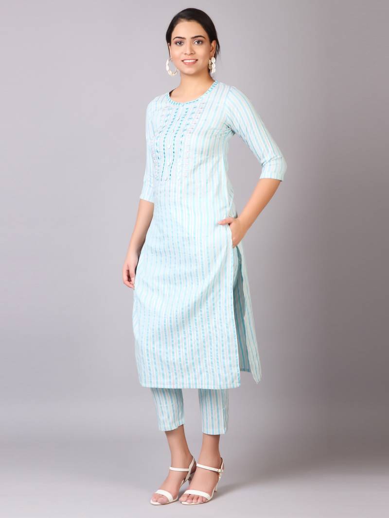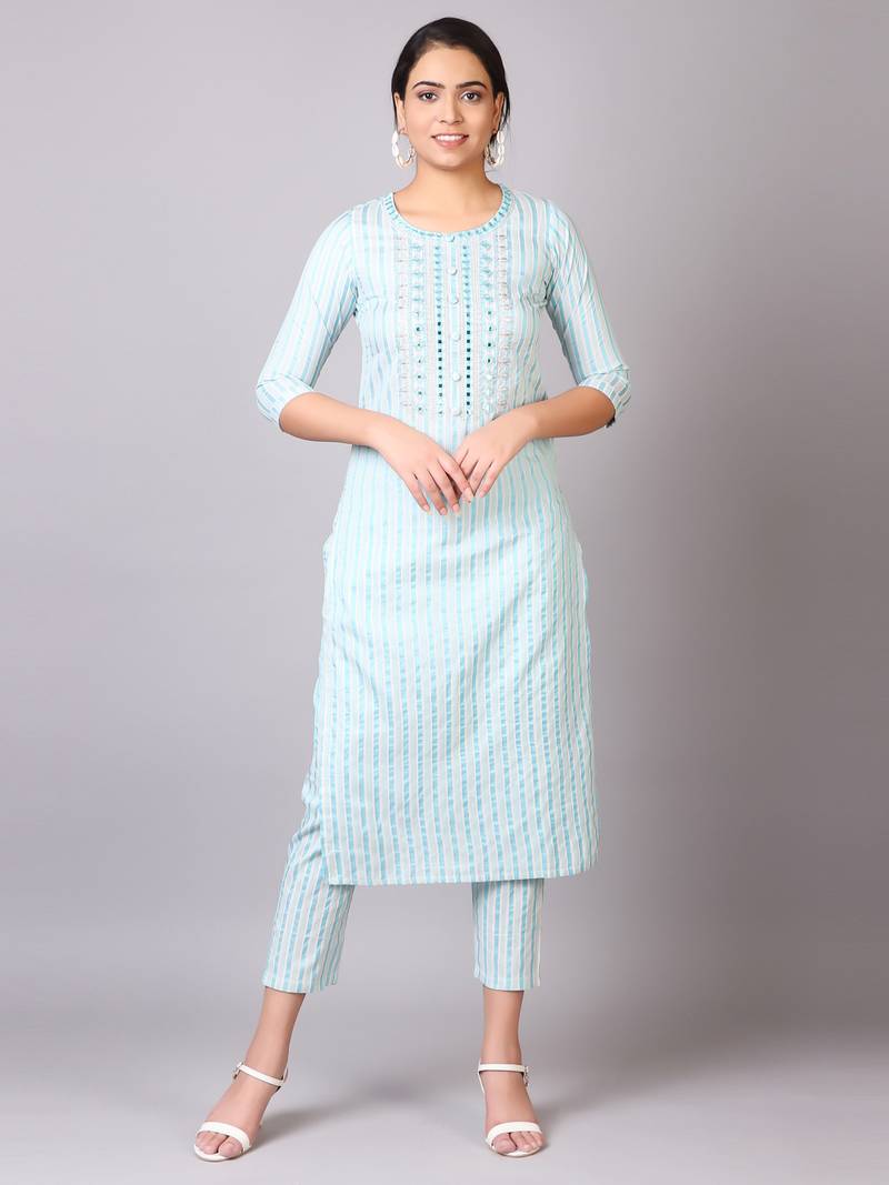 | Product Name | V Tradition Women Blue Striped Kurta With Trousers | |