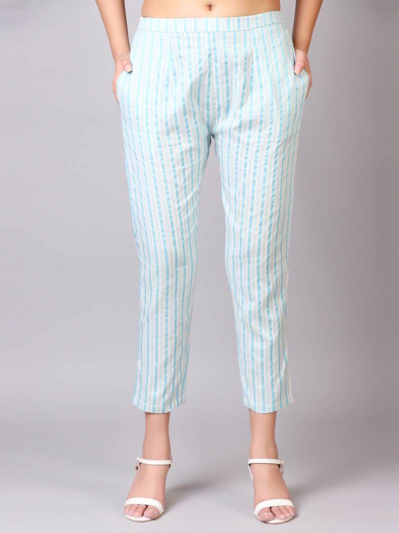 | Product Description | V Tradition Women Blue Striped Kurta With Trousers |