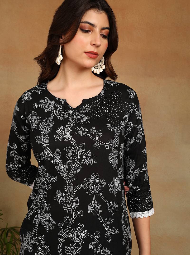 | Product Name | Vahson Women's Black Printed Rayon Kurta With Trousers And Lace Detailing | |