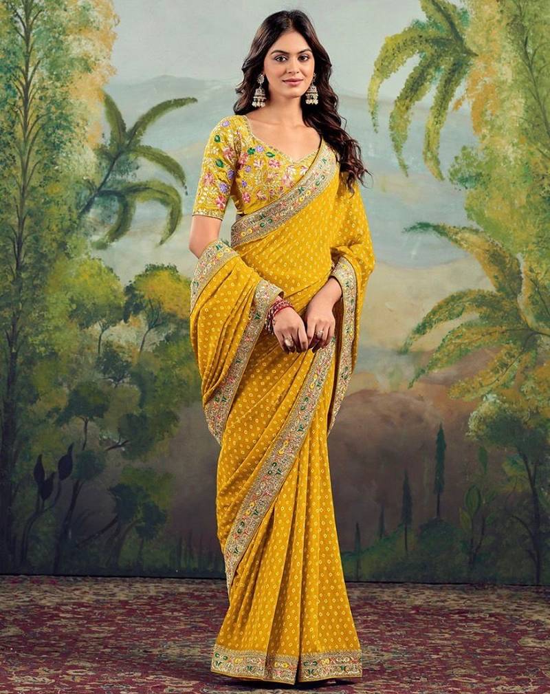 | • | Saree | : | Color- Yellow / Fabric- Faux Georgette |