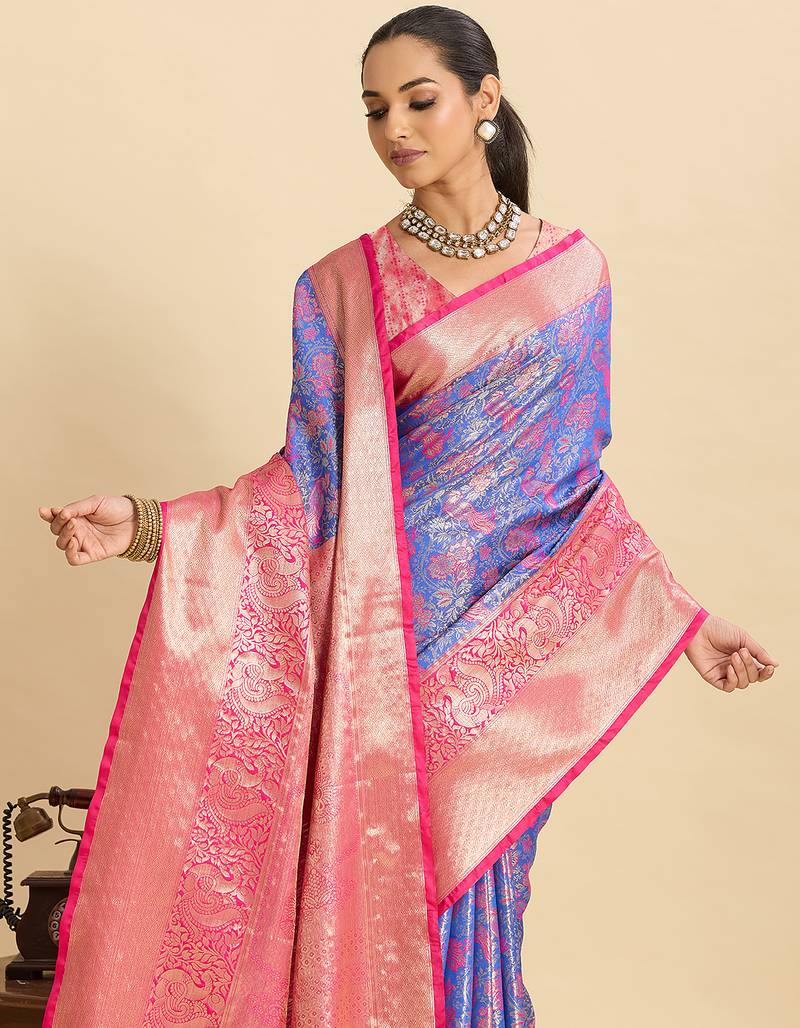 Designer saree for women with classic soft silk blend royal blue saree comes along with unstiched blouse piece