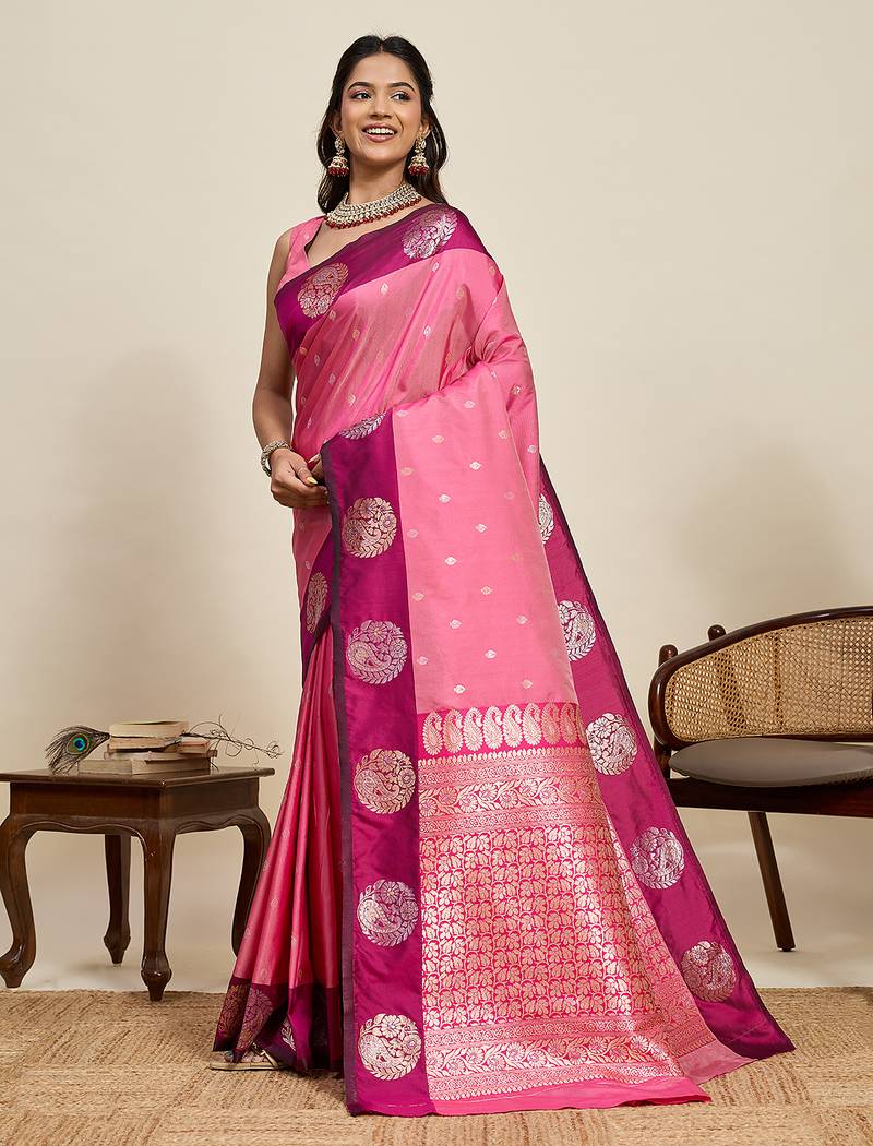 Saree : Color- Light Pink / Fabric- Silk Blend