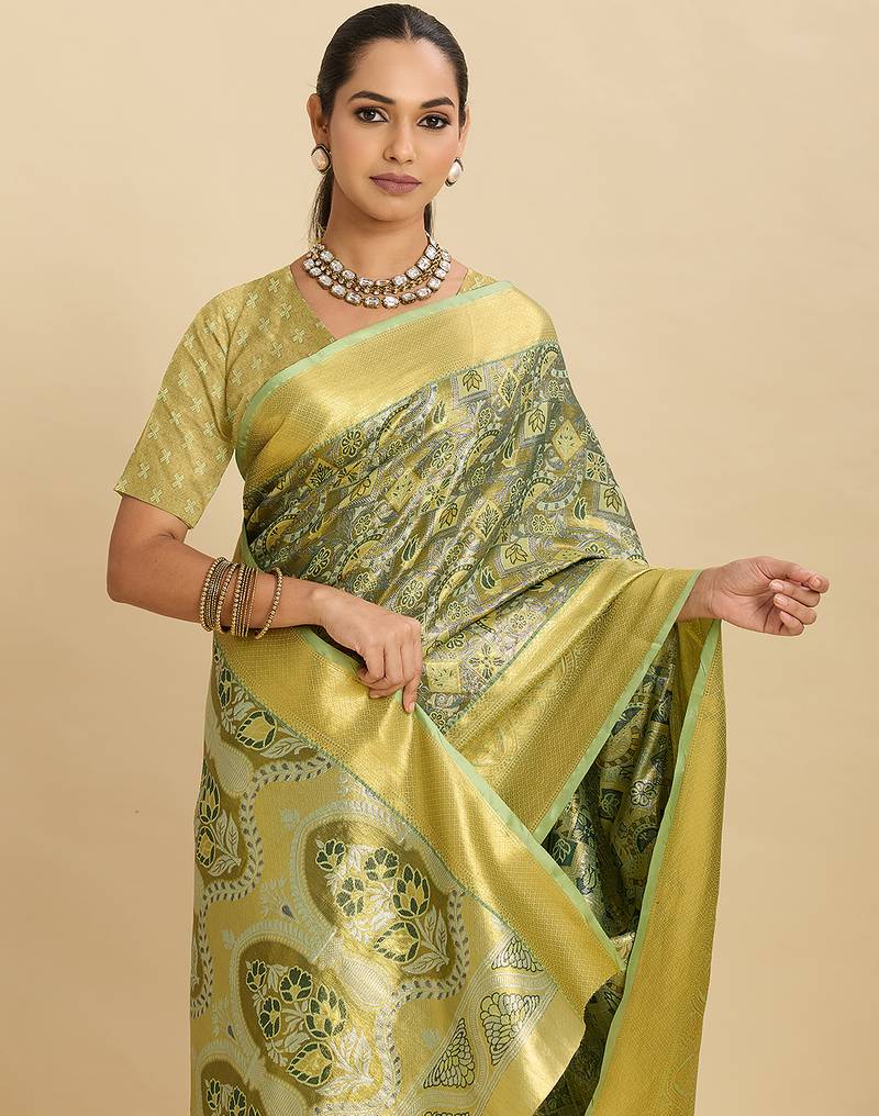 Stylish women s green soft silk blend saree with unstiched blouse piece