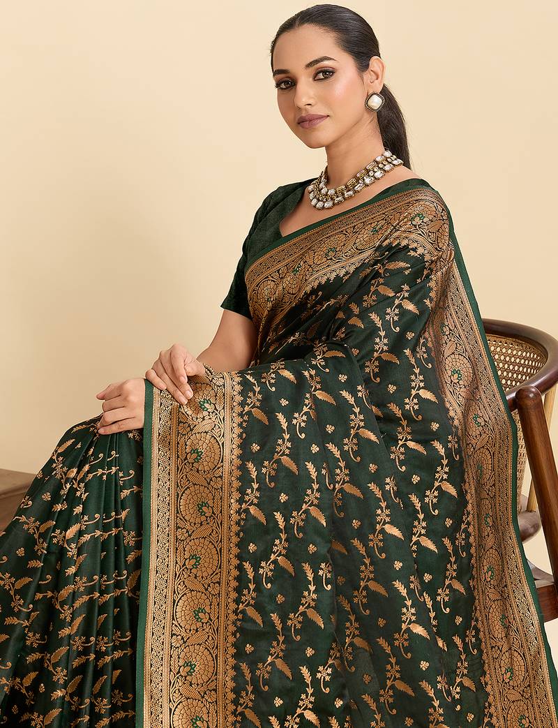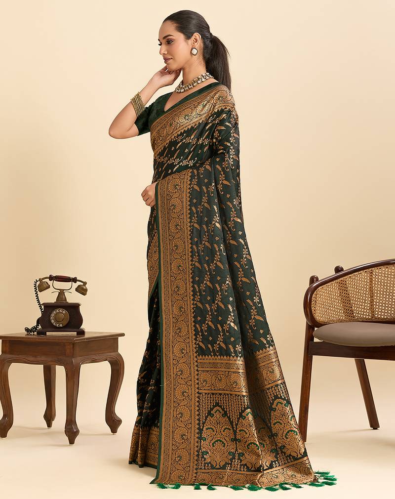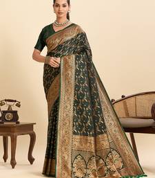 Trendy designer dark green soft silk blend saree for women for perfect for festive & celebration look