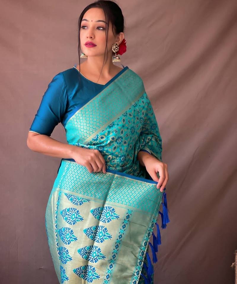 | Product Name | Aqua Blue Woven Self Design Embellished Pure Silk Banarasi Saree With Blouse | |