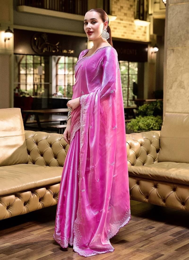 | Product Name | Baby Pink Embroidered Embellished Shimmer Chiffon Bollywood Saree With Blouse | |