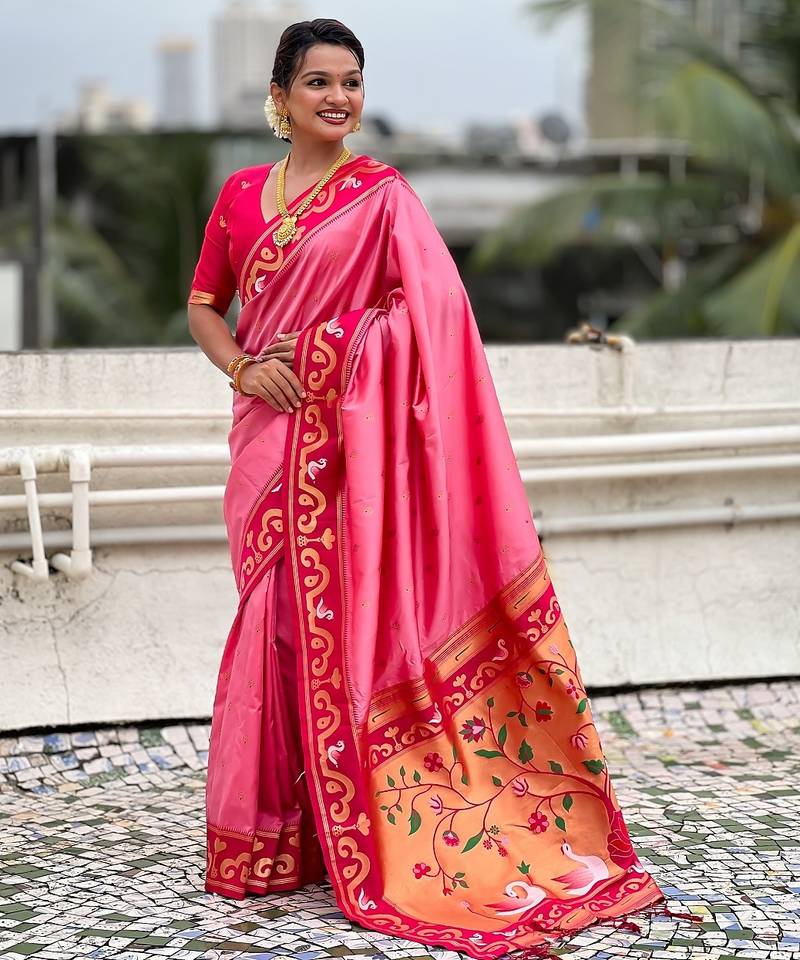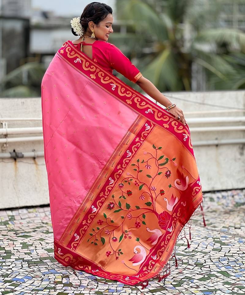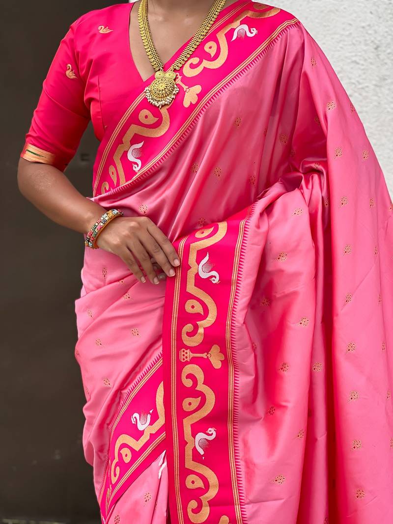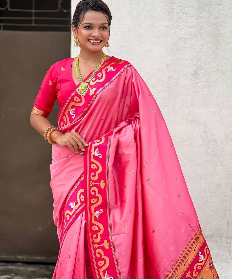 | Product Name | Baby Pink Woven Self Design Pure Silk Paithani Saree With Blouse | |