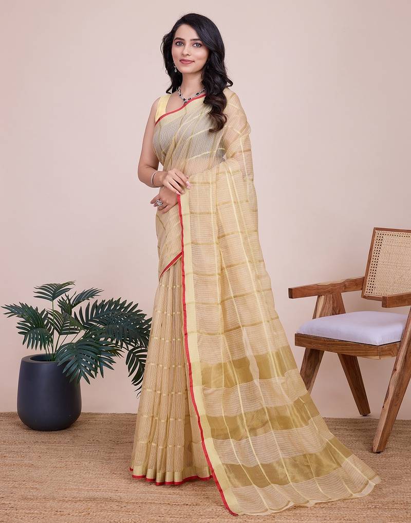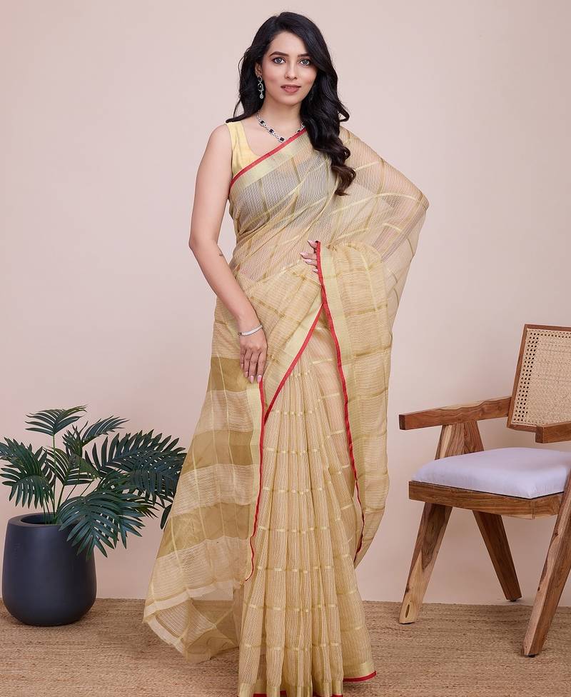 | Product Name | Beige Woven Checkered Striped Cotton Silk Kota Doria Saree With Blouse | |