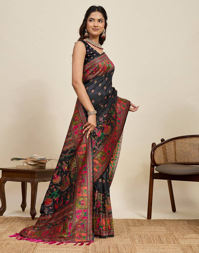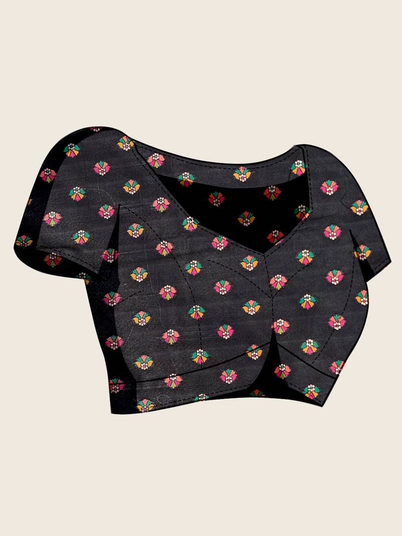 Product Name Black Floral Print Woven Soft Silk Kalamkari Saree With Blouse