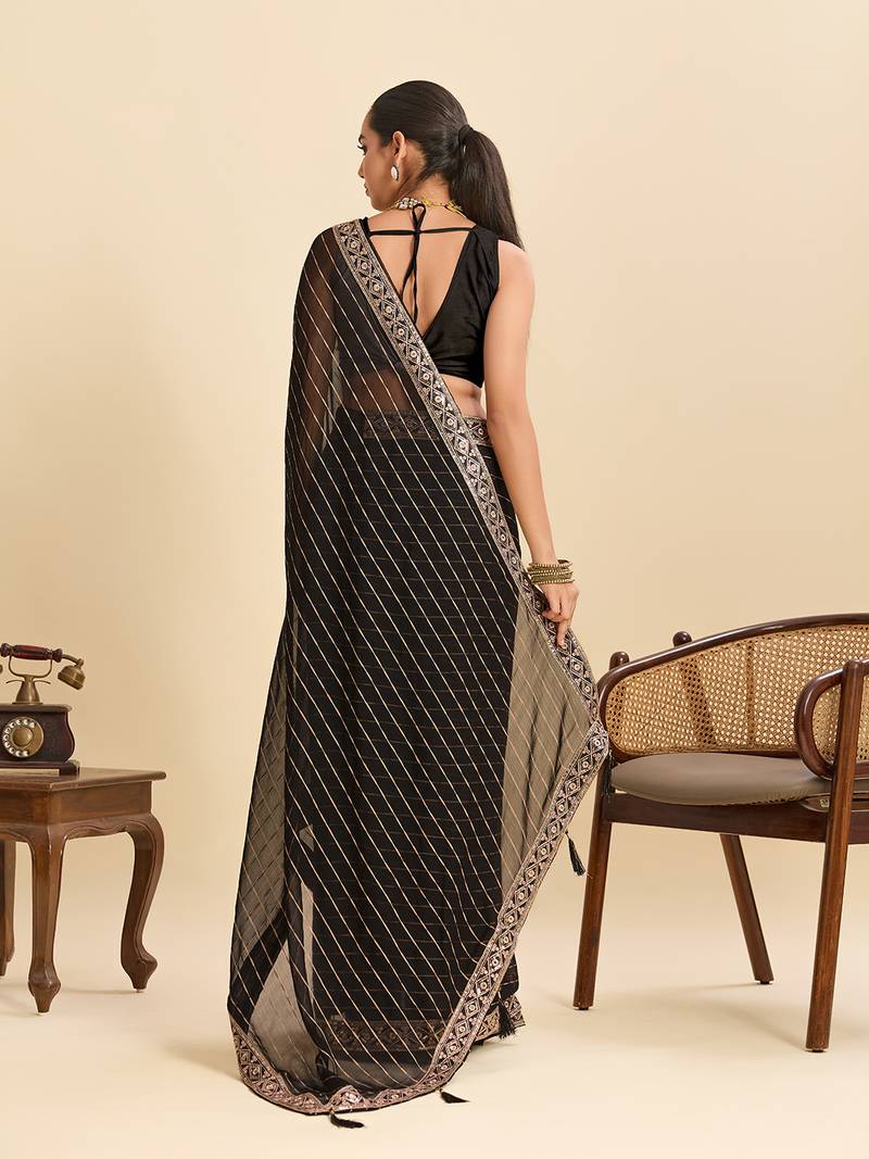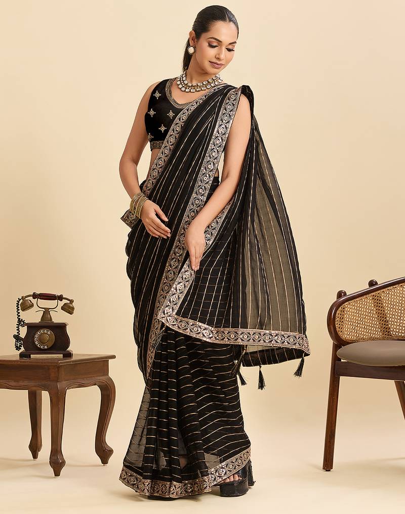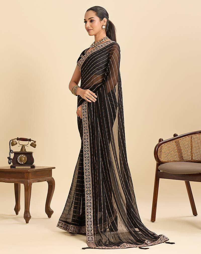 Black striped, sequence georgette bollywood saree with blouse
