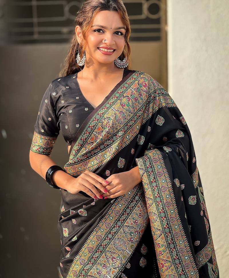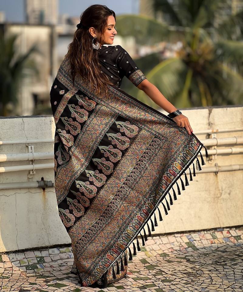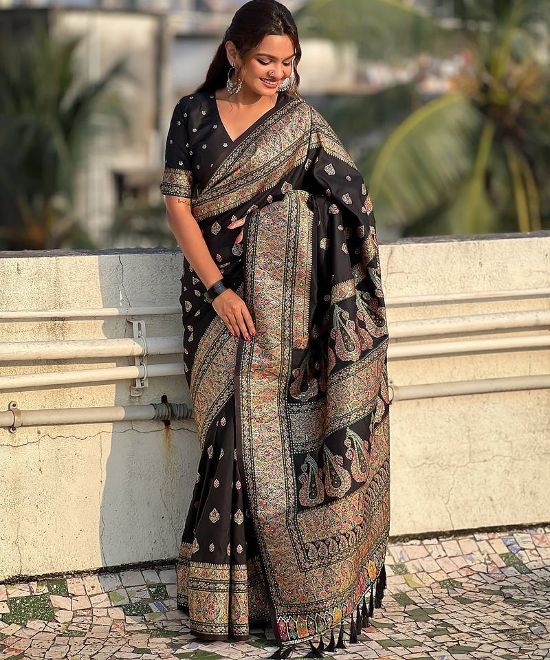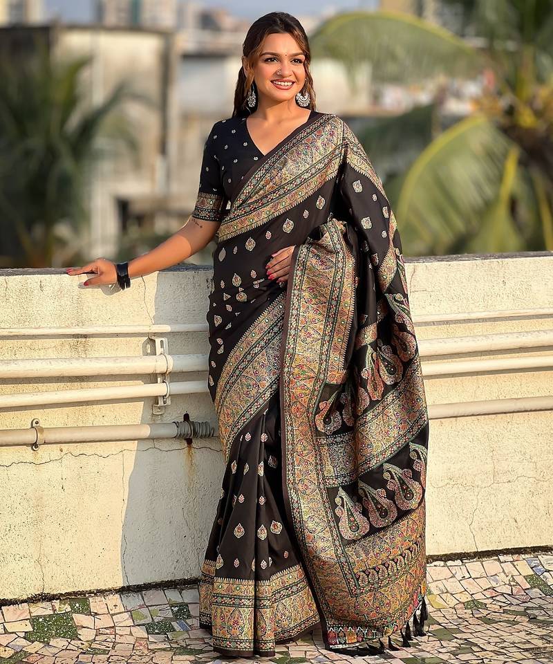 | Product Name | Black Woven Self Design Pashmina Silk Saree With Blouse | |