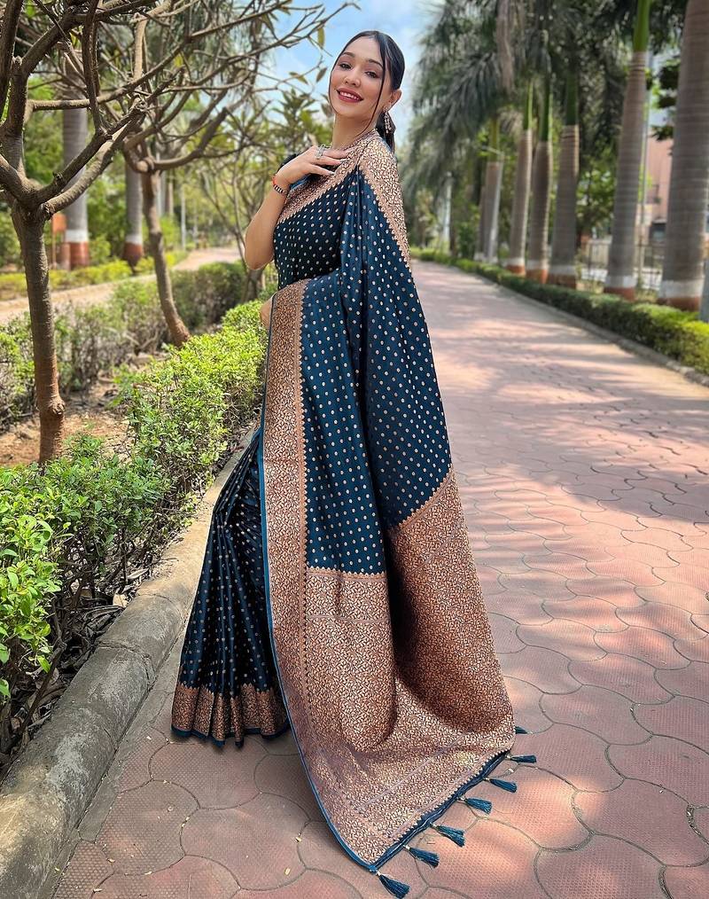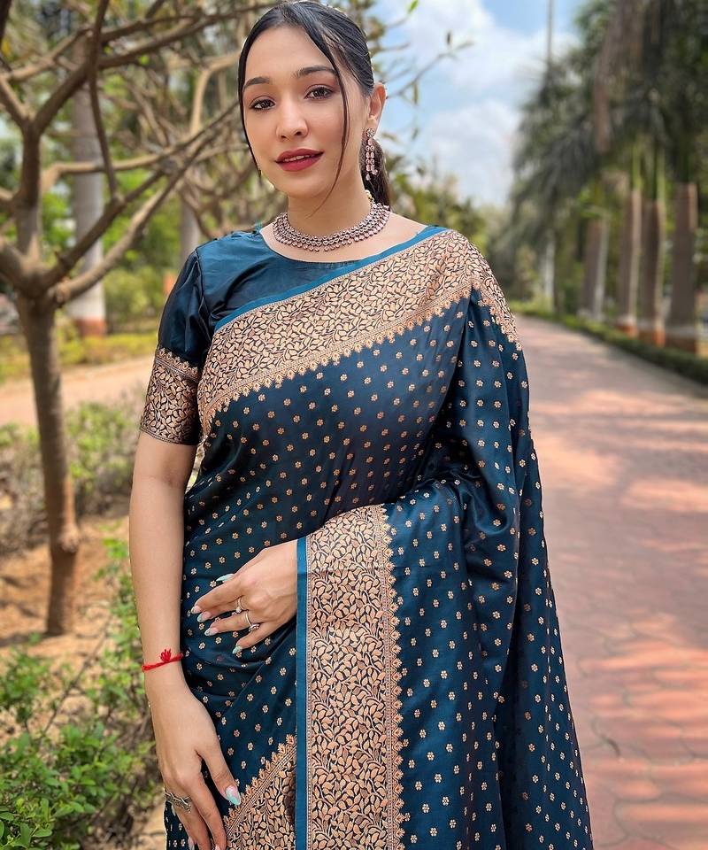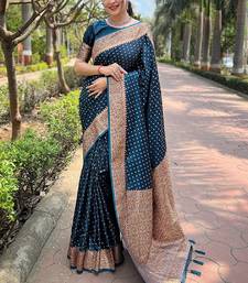 | Product Name | Blue Woven Self Design Banarasi Katan Silk Banarasi Saree With Blouse | |