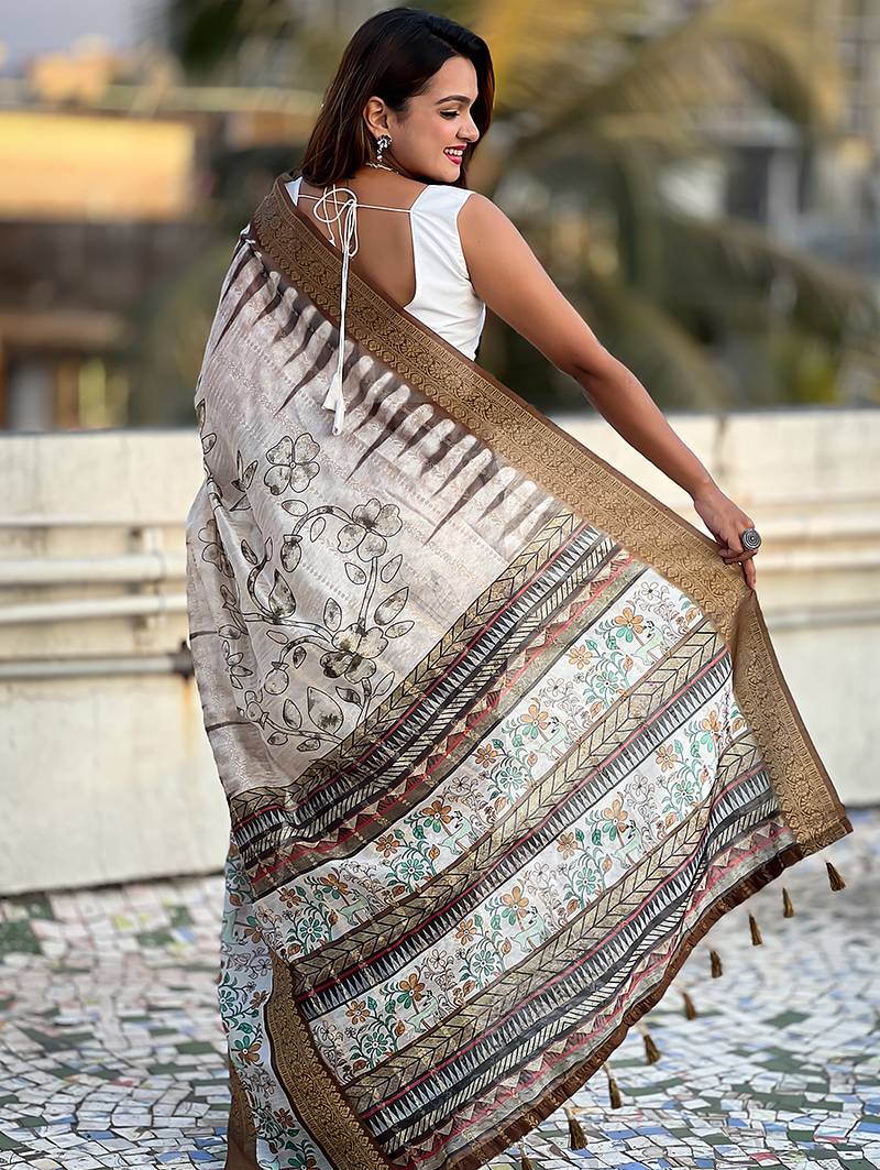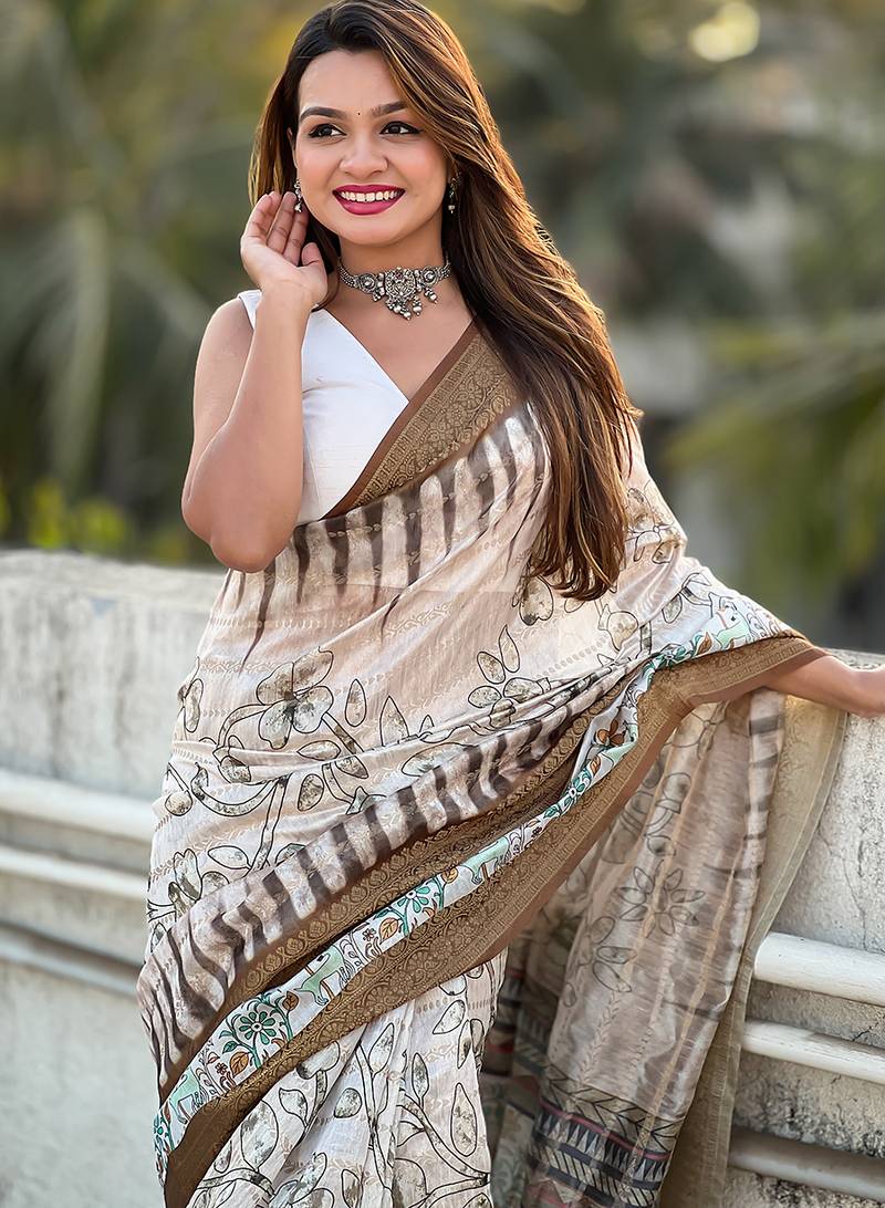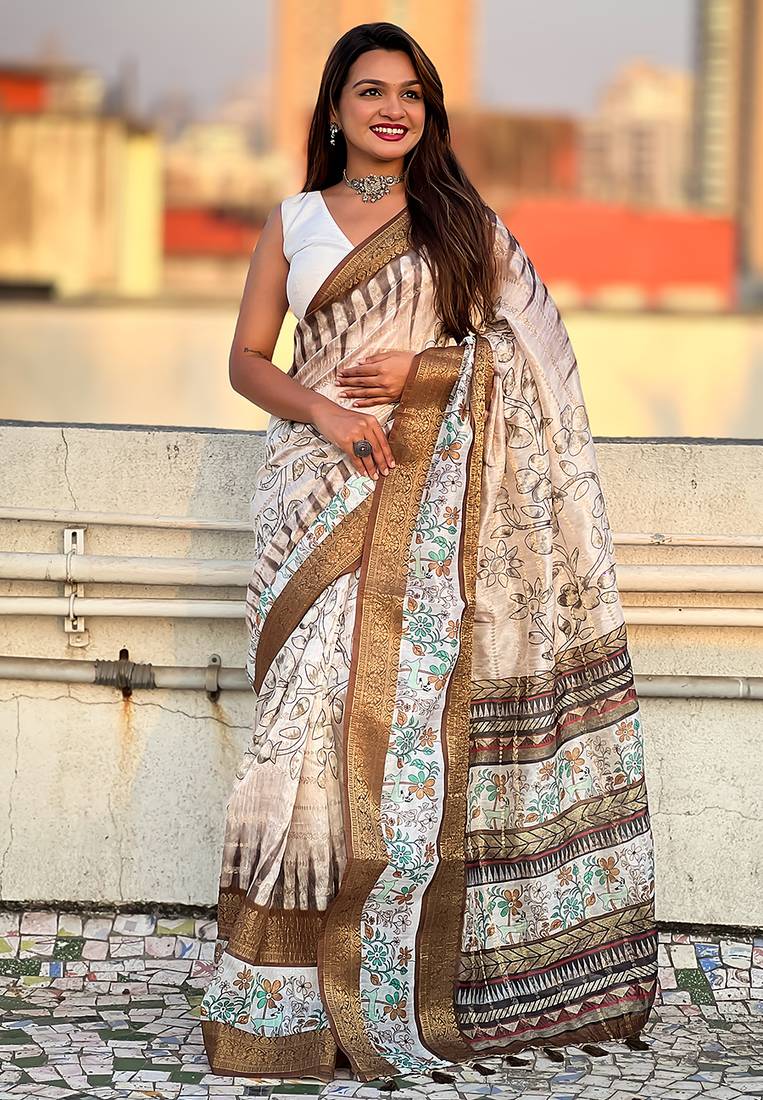 | Product Name | Brown Printed Chanderi Crush Printed Saree With Blouse | |