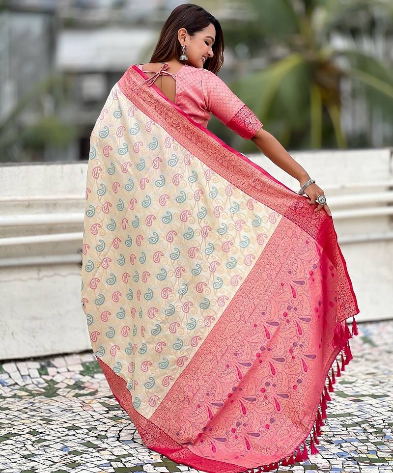 | Product Name | Cream Woven Self Design Silk Blend Patola Saree With Blouse | |