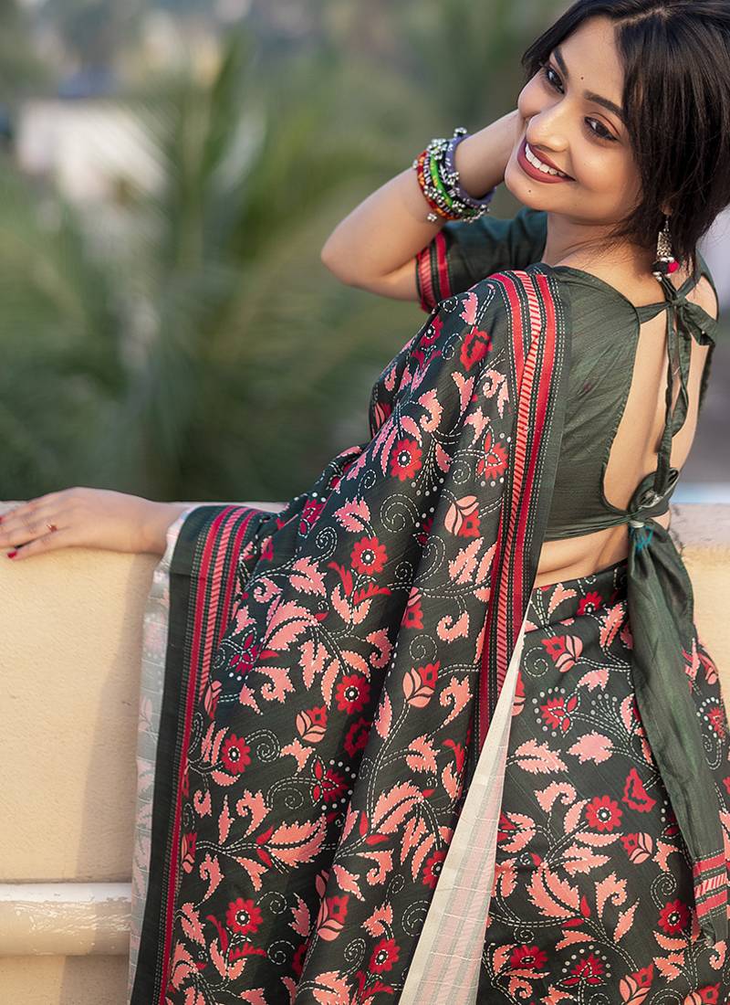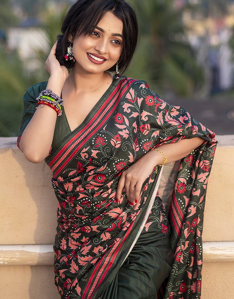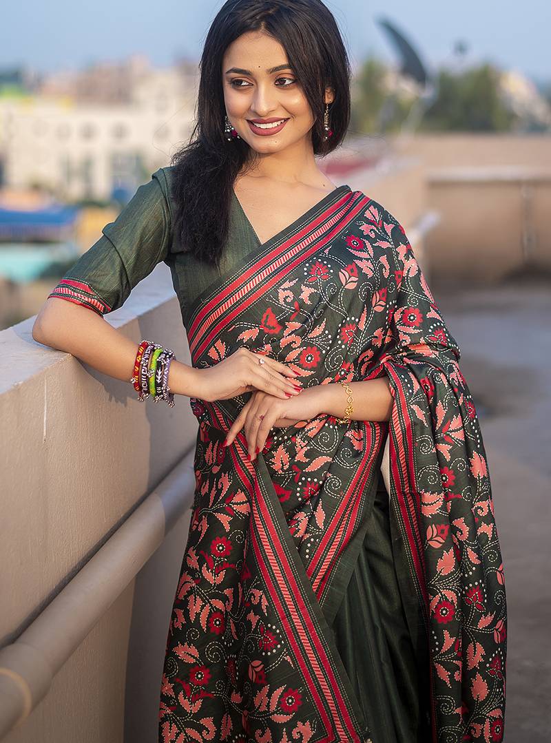 | Product Name | Dark Green Printed Kolam Silk Printed Saree With Blouse | |
