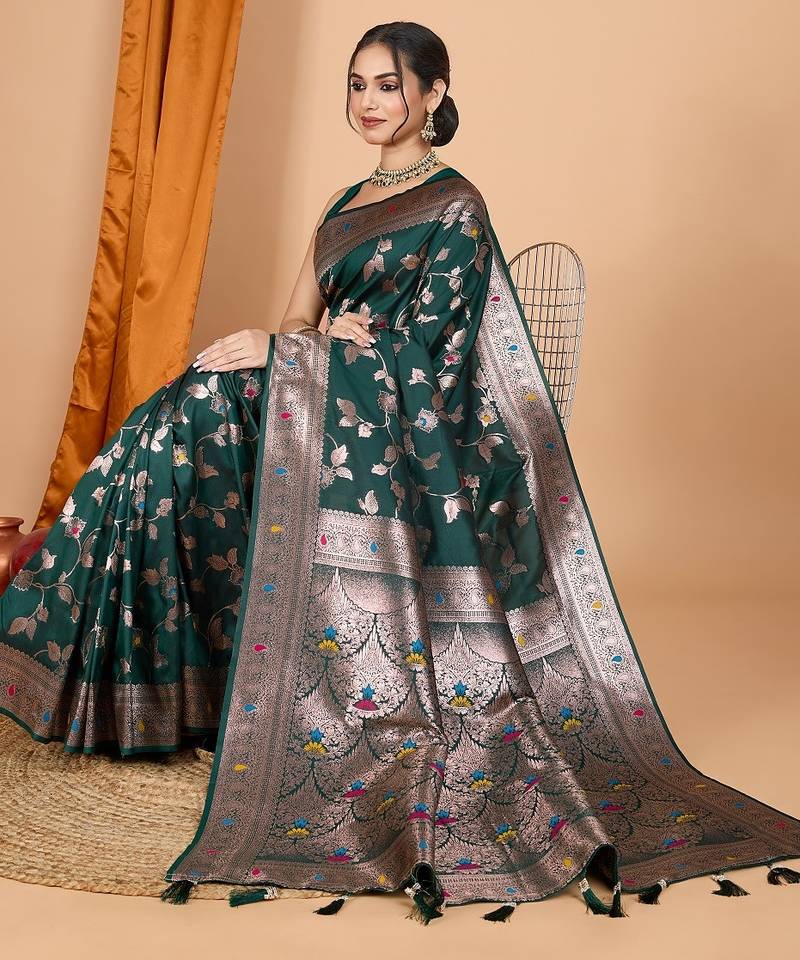| Product Name | Dark Green Woven Self Design Embellished Pure Silk Banarasi Saree With Blouse | |