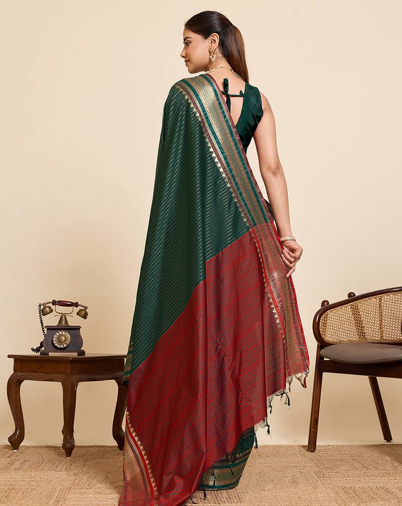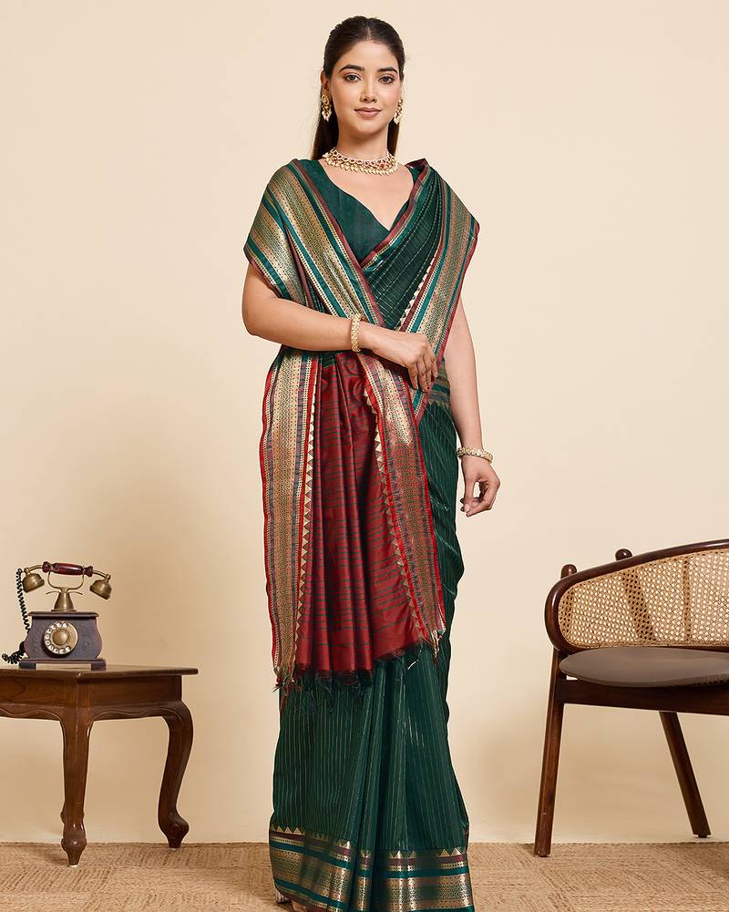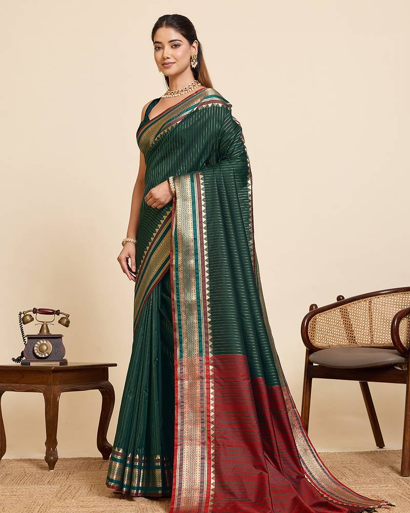 Green striped pure silk banarasi saree with blouse
