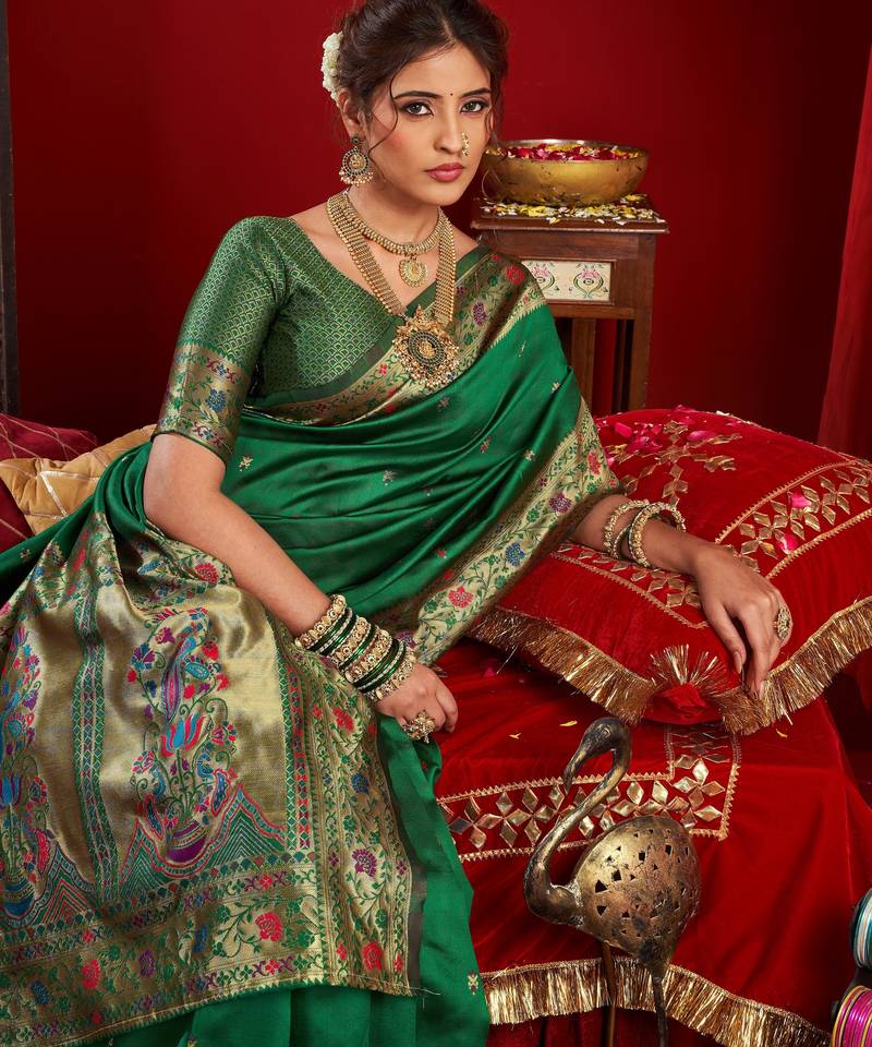 | Product Name | Green Woven Paithani Silk Saree With Blouse | |