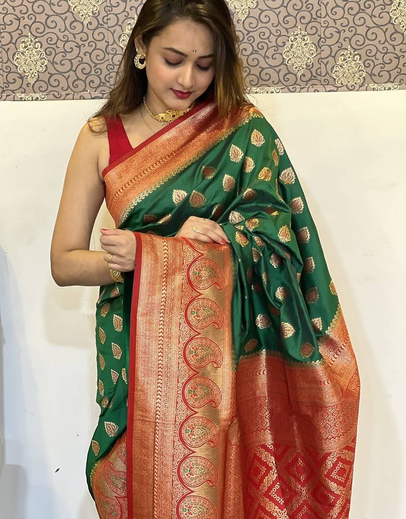 | Product Name | Green Woven Self Design Silk Blend Paithani Saree With Blouse | |