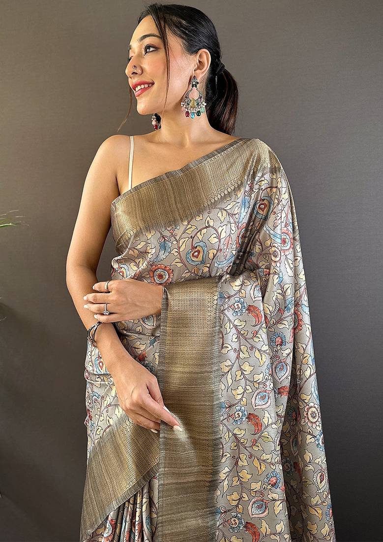 | Product Name | Grey Printed Assam Silk Printed Saree With Blouse | |