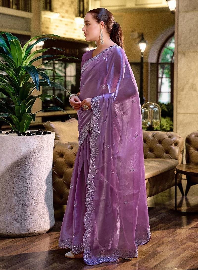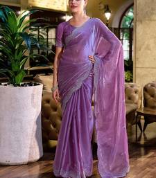 Lavender embroidered embellished shimmer chiffon bollywood saree with blouse