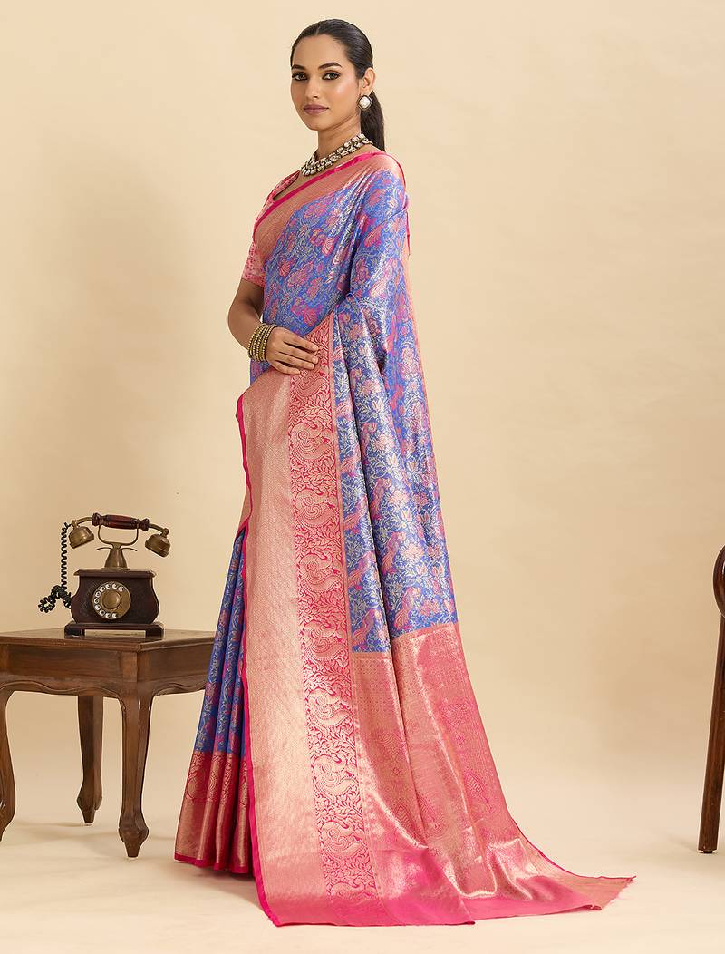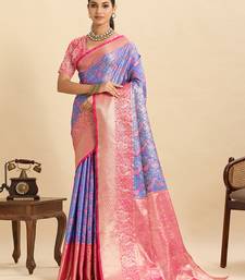 Lavender woven semi silk banarasi saree with blouse