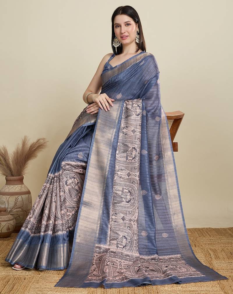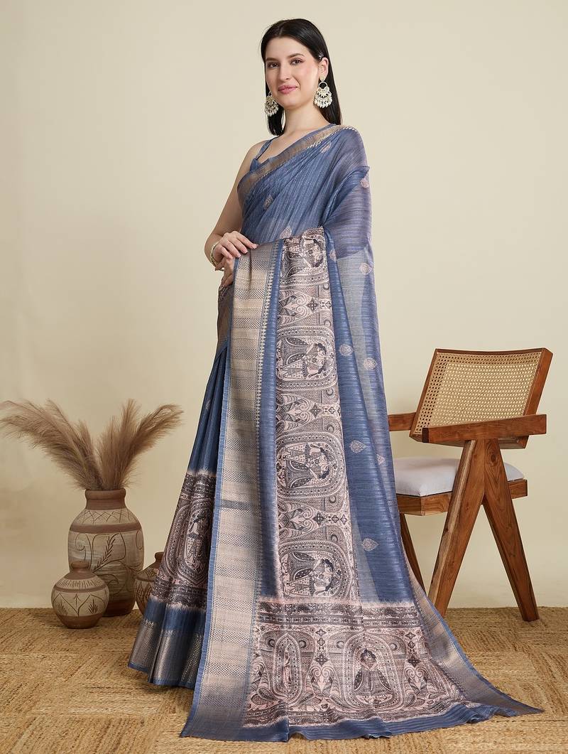 | Product Name | Light Blue Printed Floral Print Woven Cotton Silk Kalamkari Saree With Blouse | |