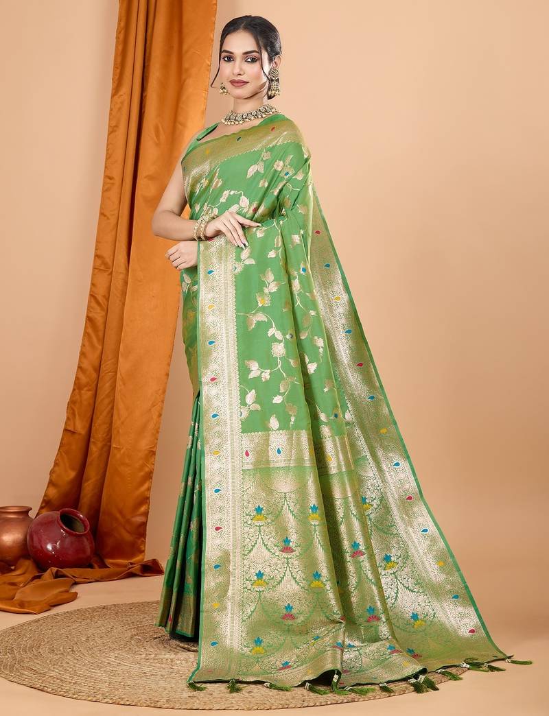 | Product Name | Light Green Woven Self Design Embellished Pure Silk Banarasi Saree With Blouse | |