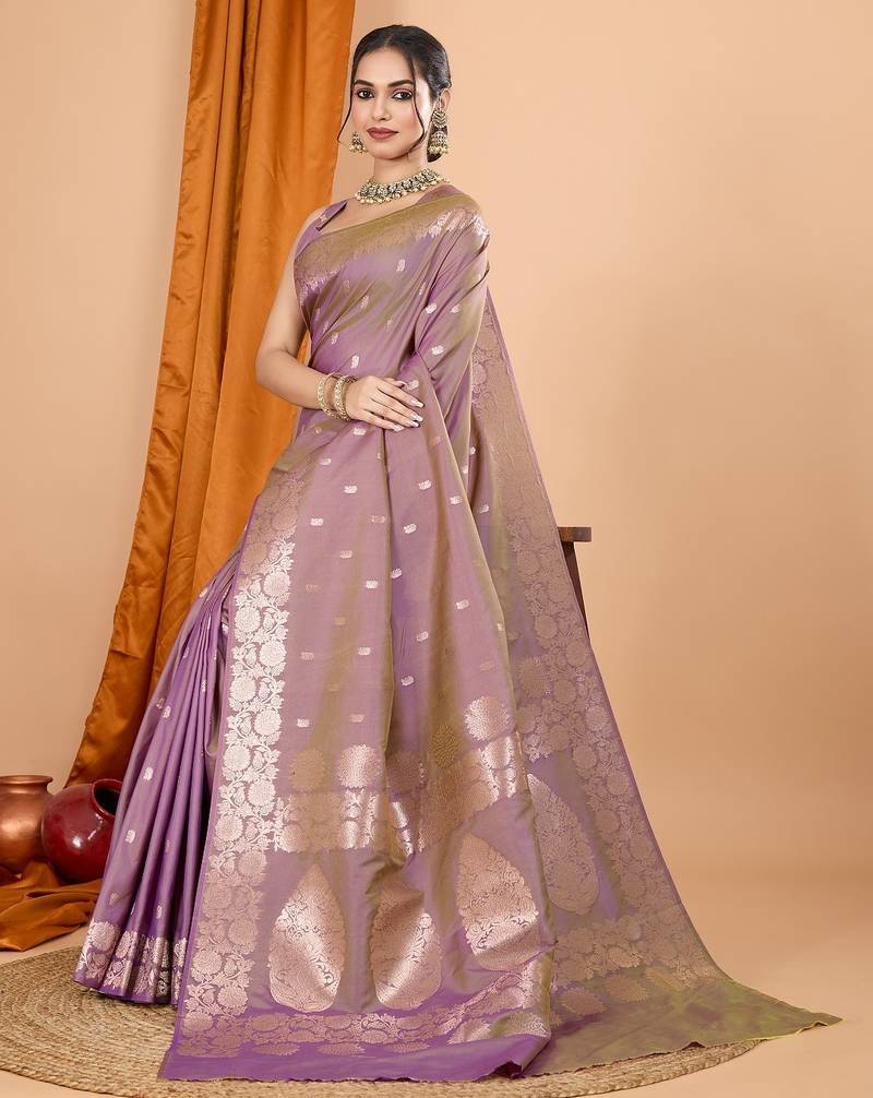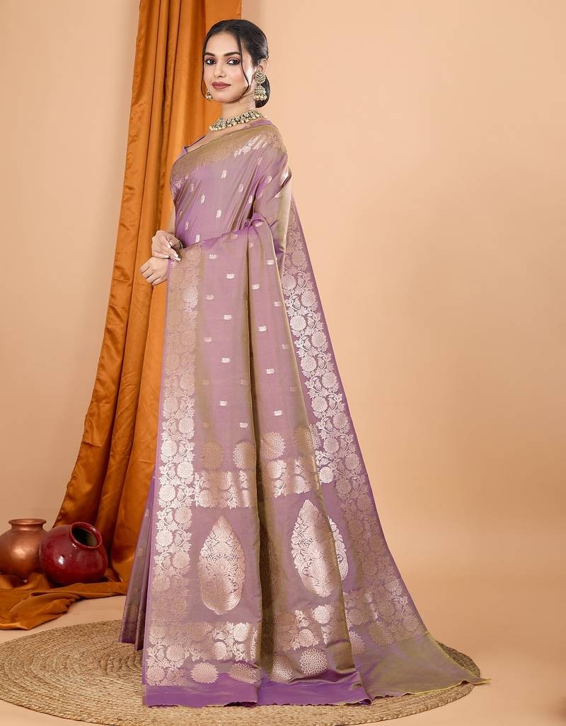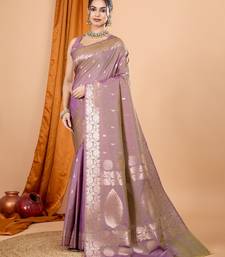 Light purple woven self design embellished pure silk banarasi saree with blouse