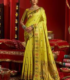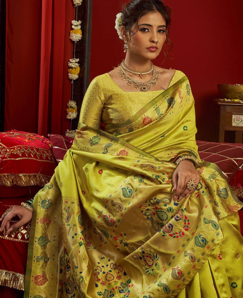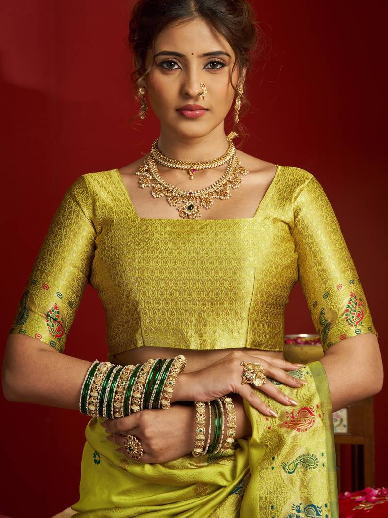 Lime green woven paithani silk saree with blouse