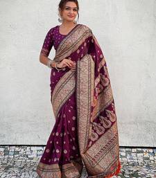 Magenta woven self design pashmina silk saree with blouse