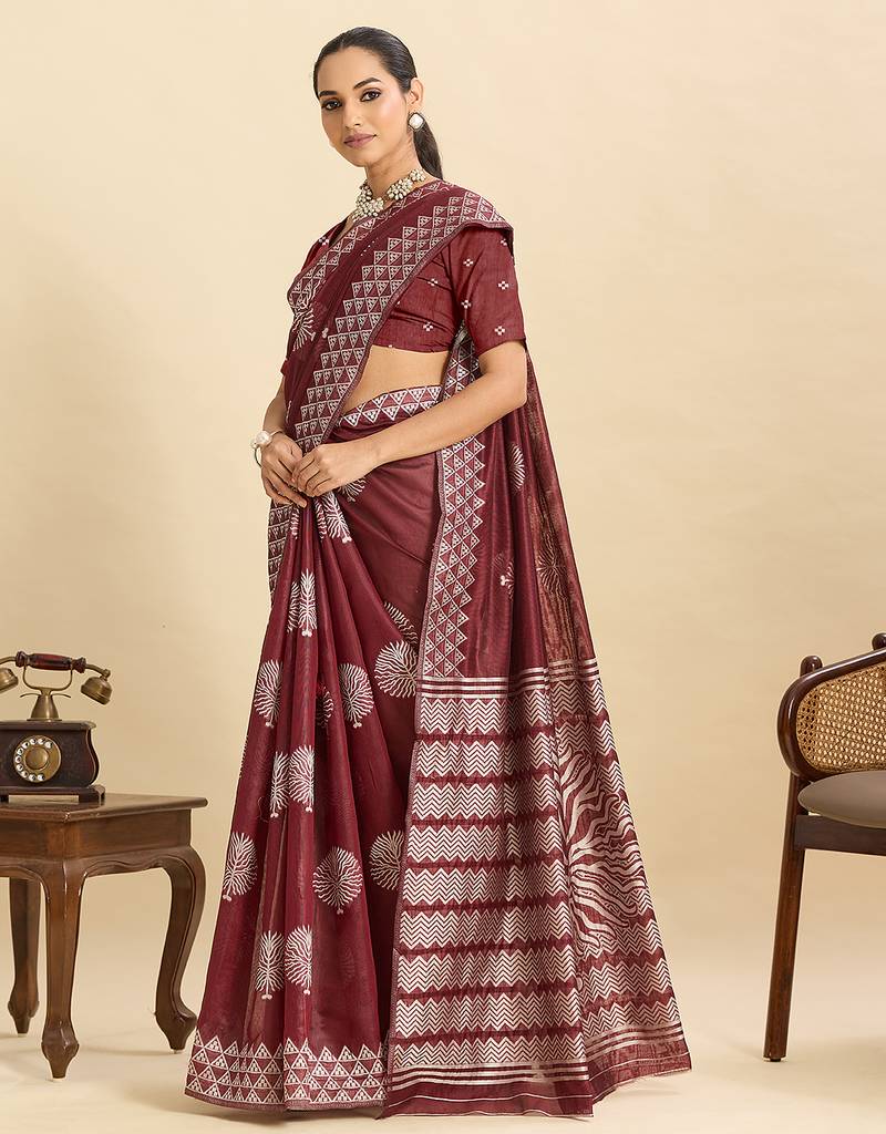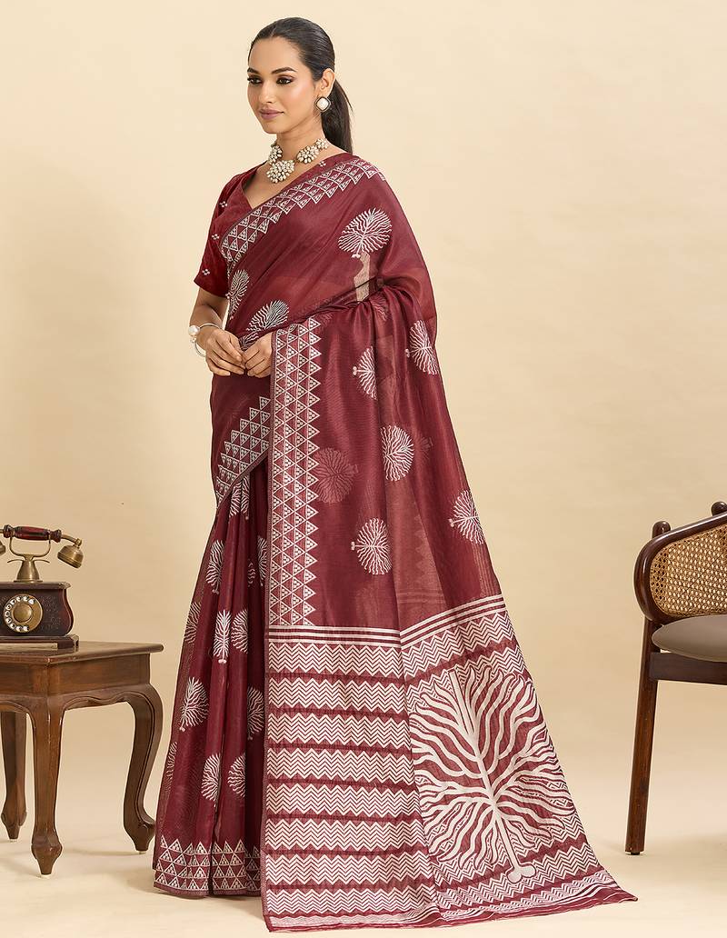 Product Name Maroon Floral Print Soft Silk Bollywood Saree With Blouse