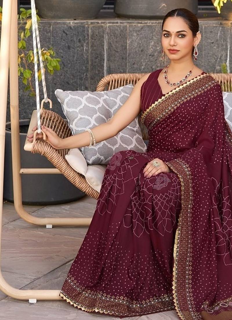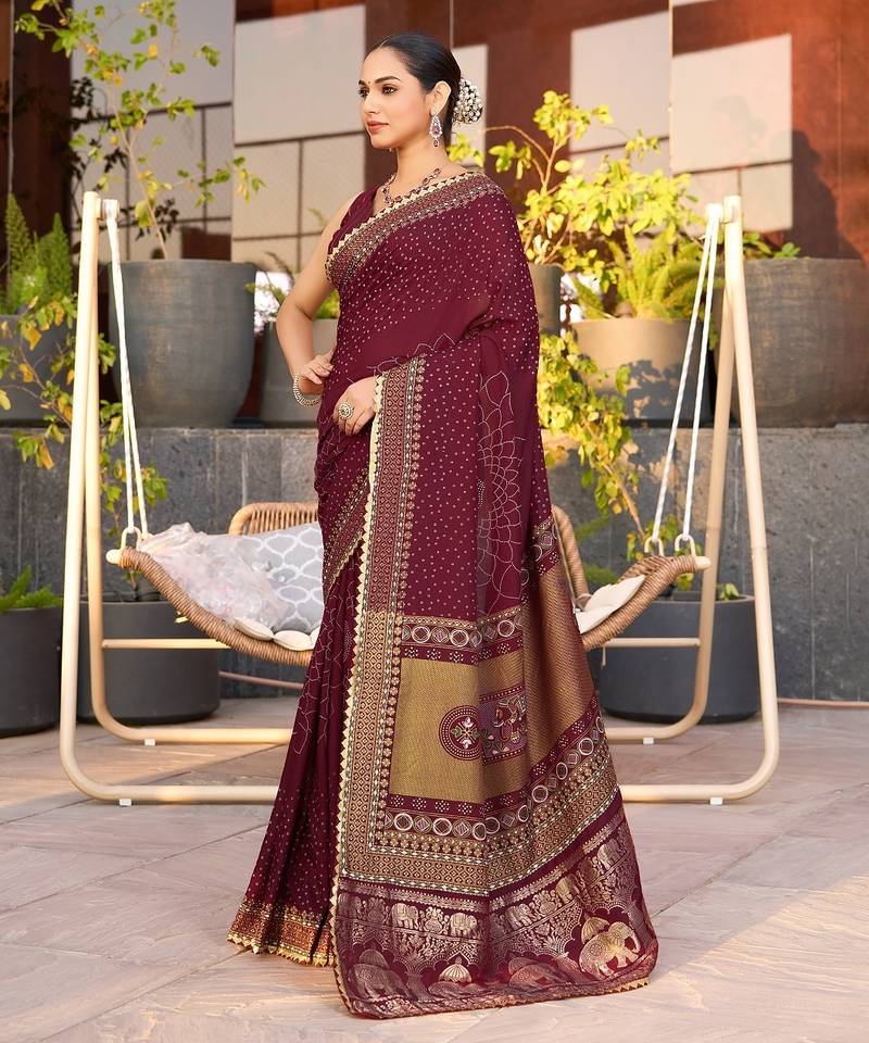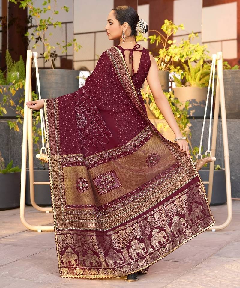 Product Name Maroon Printed Woven Cotton Silk Bandhani Saree With Blouse