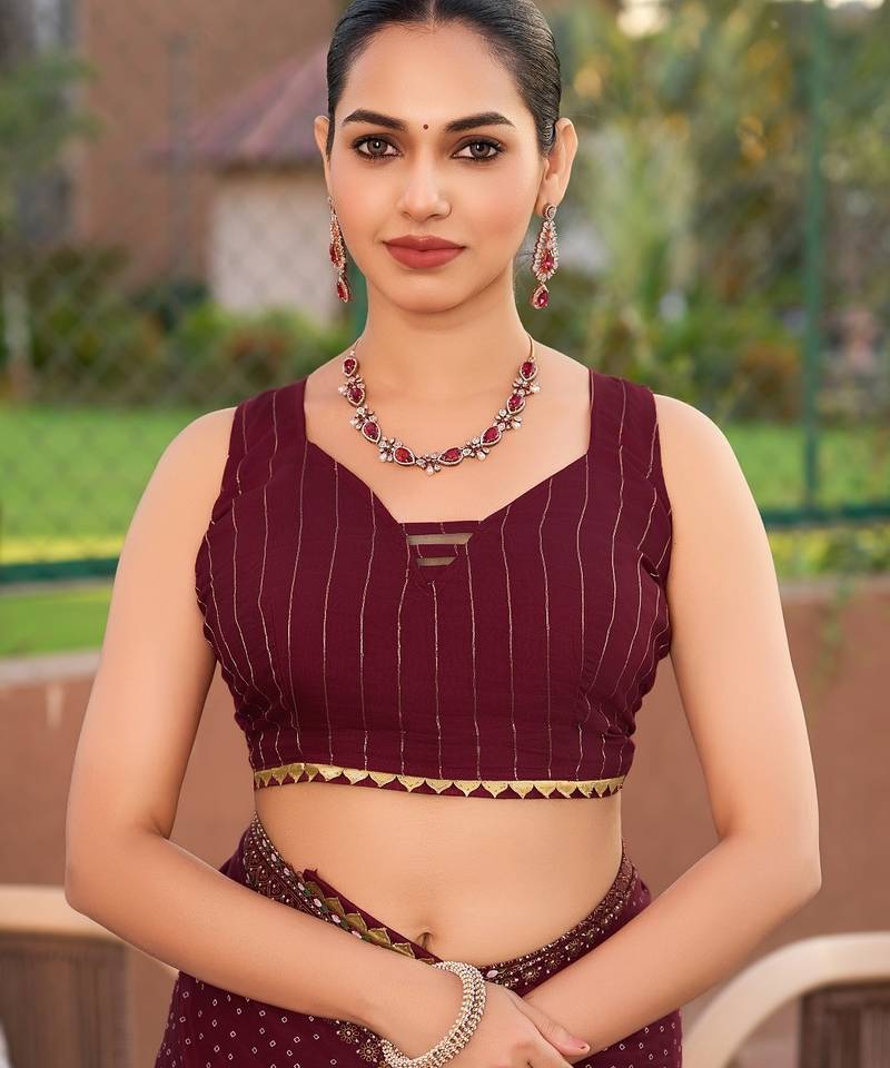Blouse : Color- Maroon / Fabric- Cotton Silk
