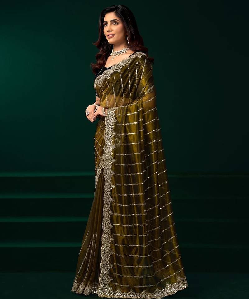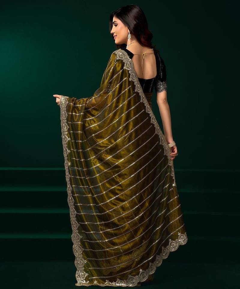 | • | Saree | : | Color- Mehendi / Fabric- Net |