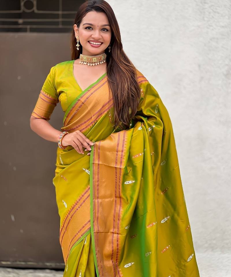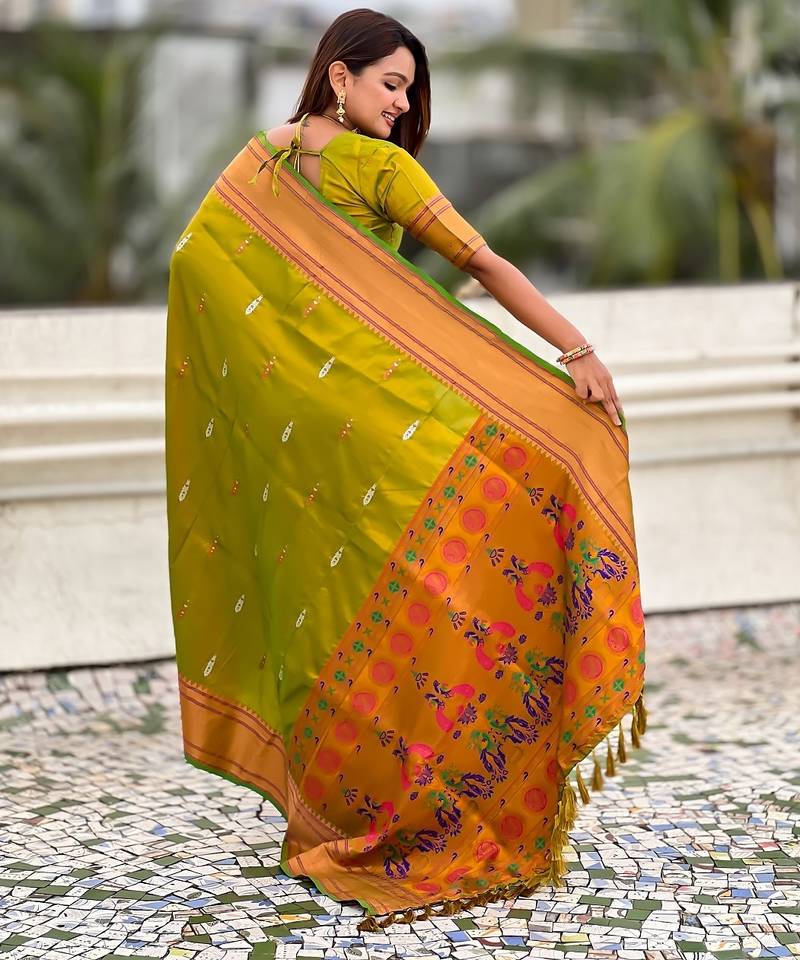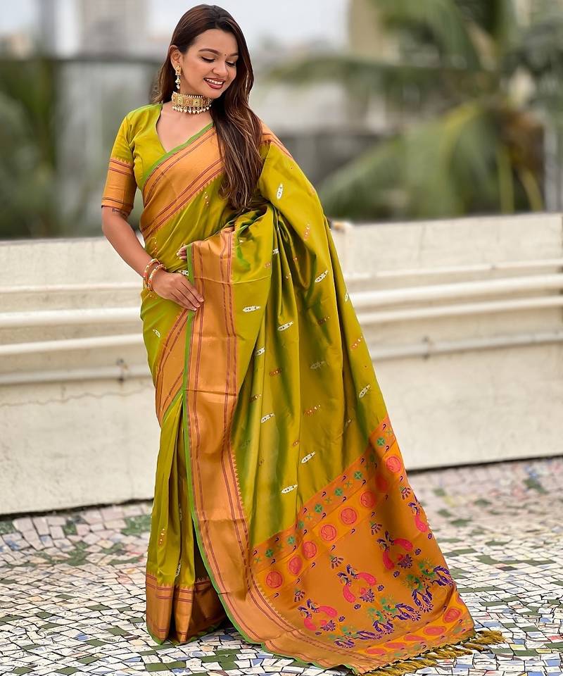 | Product Name | Mehendi Woven Self Design Pure Silk Paithani Saree With Blouse | |