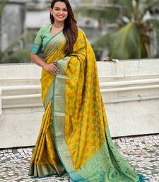Mehendi woven self design silk blend patola saree with blouse